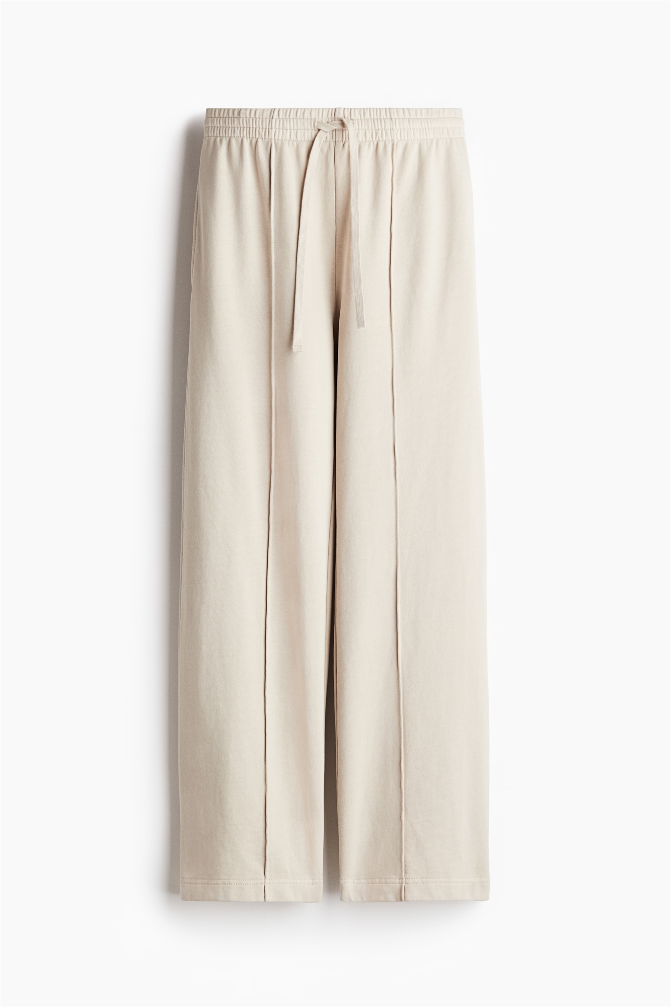 Тренировочные брюки из легкого хлопкового свитшота с эластичной планкой и утягивающим шнурком на талии. Небрежные боковые карманы и широкие штанины с застроченными складками спереди.