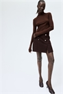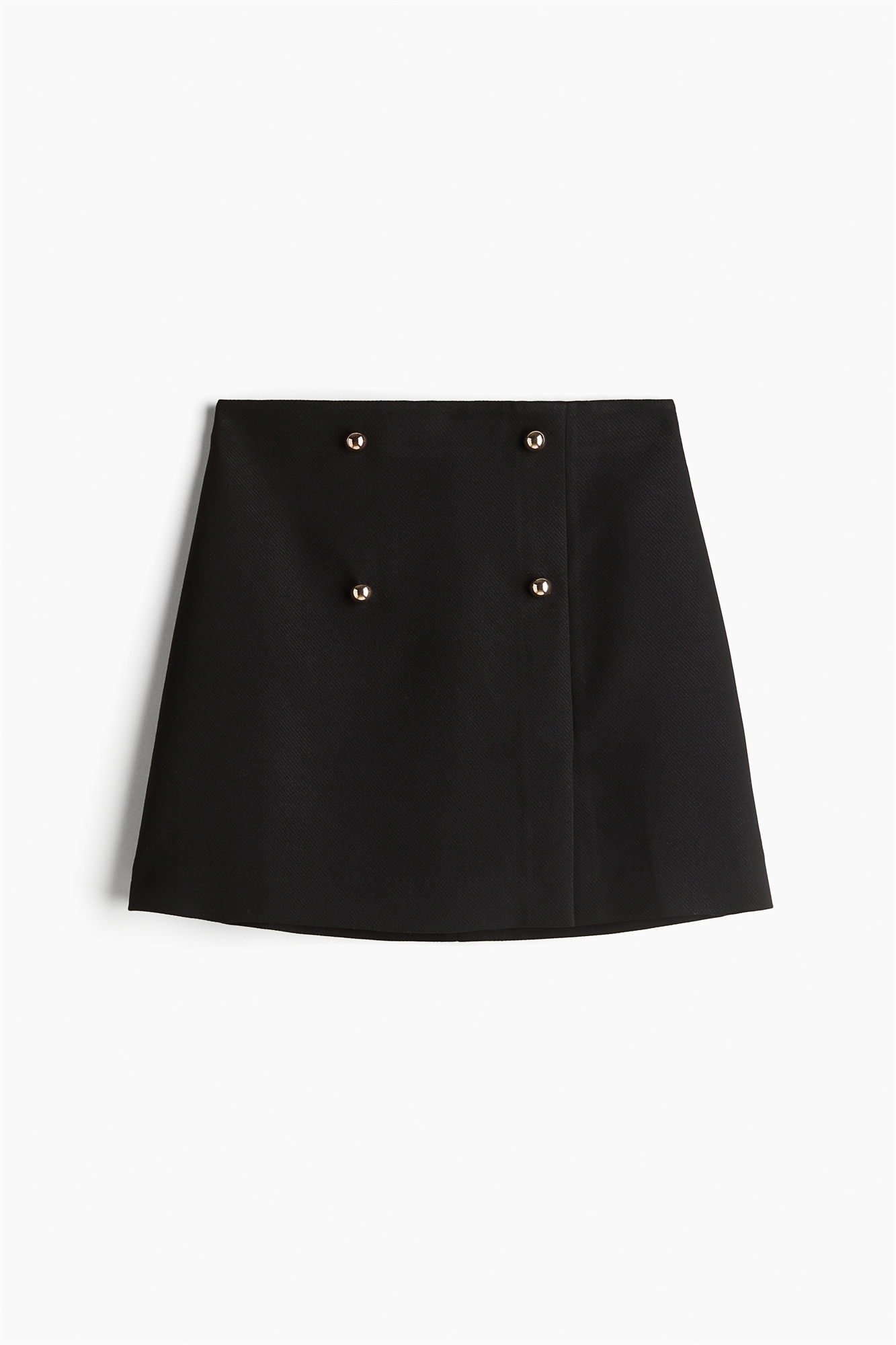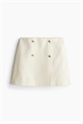 Короткая юбка А-линии из тканого материала с пришитым передом и декоративными пуговицами золотистого цвета. Регулярная талия с потайной застежкой на молнию и пуговицу. На подкладке.