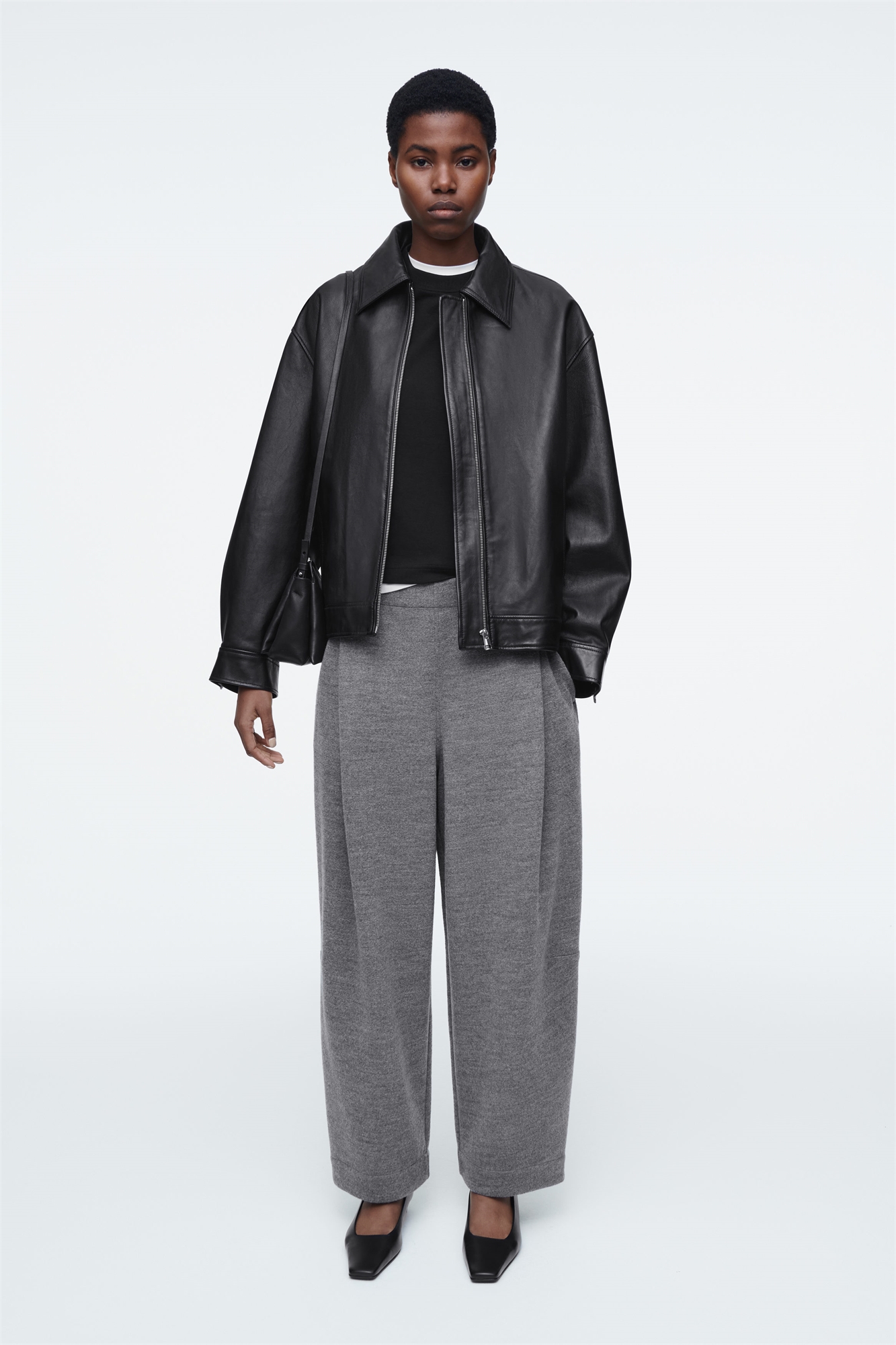Поражающие своей простотой современные брюки с бочкообразными штанинами изготовлены из шерстяной смеси RWS, вываренной для придания более структурированного вида. Они выполнены в нестареющем сером меланжевом цвете и снабжены эластичным поясом, складками спереди и накладным карманом. Подойдите к ним в качестве комплекта с соответствующим кардиганом. Регулярный крой В изделии используется шерстяное волокно Responsible Wool Standard TE-00047206 (RWS), полученное с ферм, сертифицированных в соответствии с требованиями к благополучию животных и управлению земельными ресурсами Шелл: 50% шерсти RWS, 32% хлопка, 18% полиэстера. Подкладка: 100% хлопок. Без учета отделки / Сухая чистка Внутренняя длина штанины размера S составляет 63,3 см / Модель носит размер S