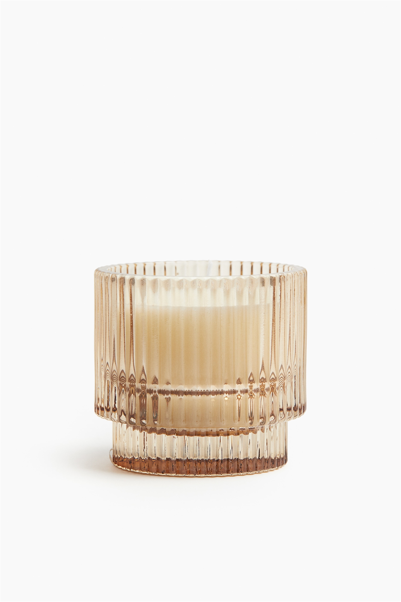 Ароматическая свеча в рифленом стеклянном держателе, красиво отражающем свет. Время горения 10 часов. Высота 6 см. Диаметр 6,5 см.