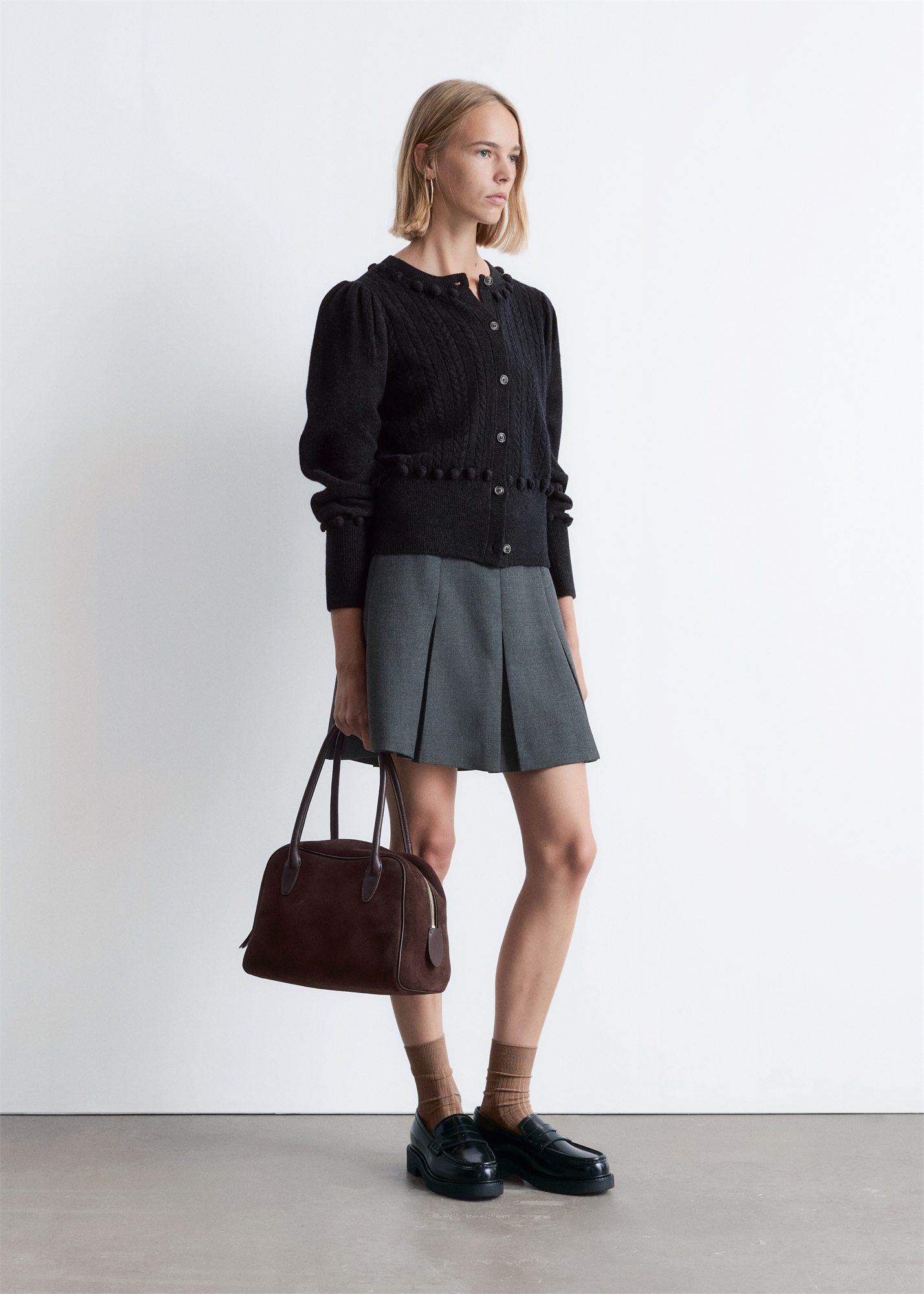 Кардиган из шерсти кабельной вязки с пышными рукавами, ребристой отделкой и помпонами. • Застежка на пуговицы • 100% шерсть RWS TE-00047206 • Длина кардигана: 54 см / 21,2 дюйма (EU 36 / UK 8 / US 4)