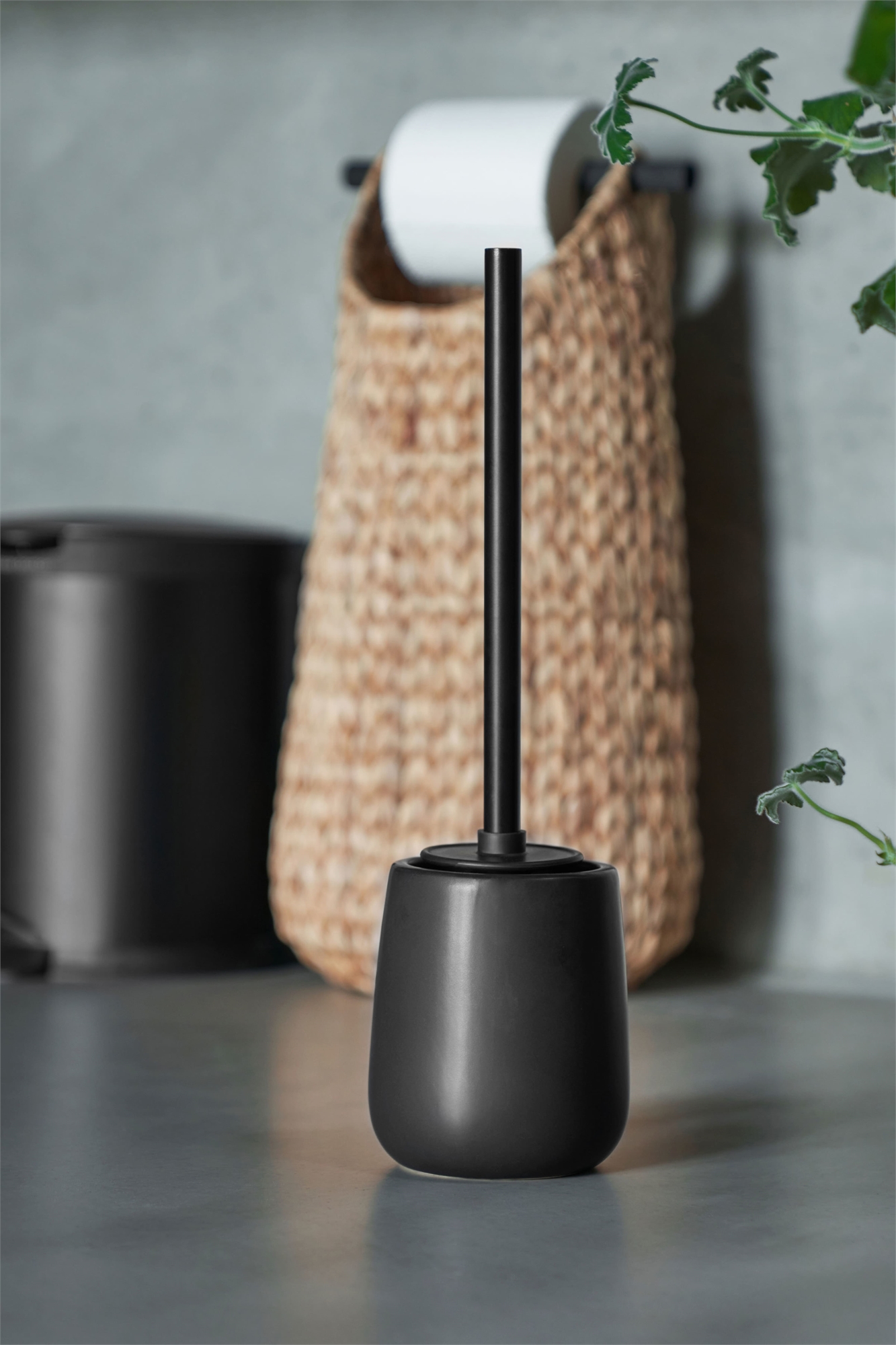 При обновлении ванной комнаты важны такие мелочи, как щетка для унитаза. С этой керамической туалетной щеткой от House Doctor ваша ванная комната быстро обновится без особых усилий. Черный цвет и простой дизайн создают вневременной минималистский образ. Многие не задумываются об этом предмете, ведь он выполняет грязную работу, но он должен вписываться в остальной интерьер, и этот дизайн станет отличным дополнением к любой современной ванной комнате. Туалетная щетка поставляется с дополнительной насадкой. h: 38,5 см, dia: 11 см.
