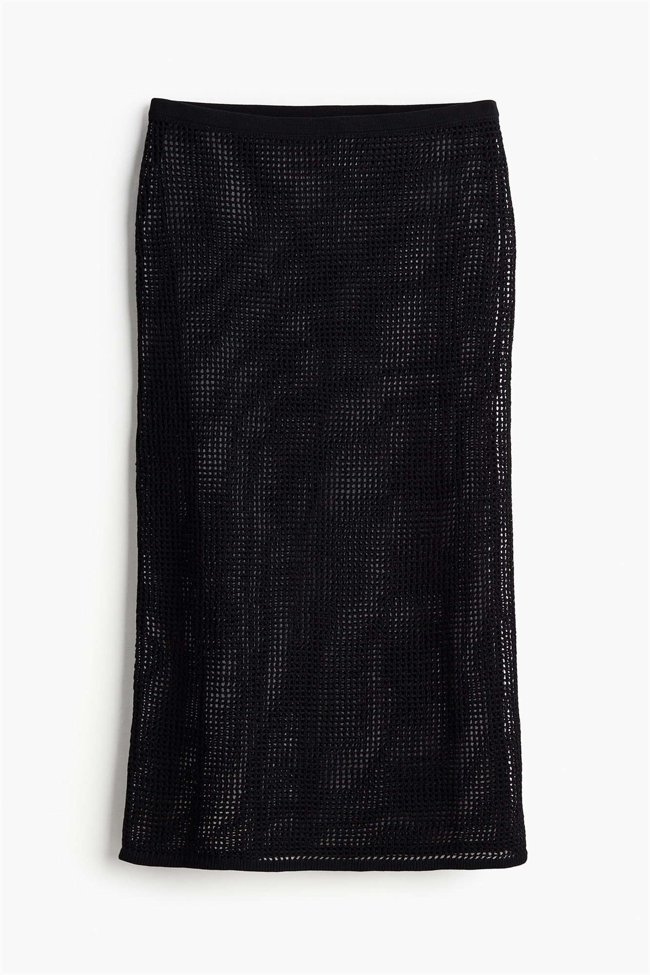 Пляжная юбка длиной до колен из мягкого трикотажа с дырочками и эластичной резинкой на талии. Без подкладки.