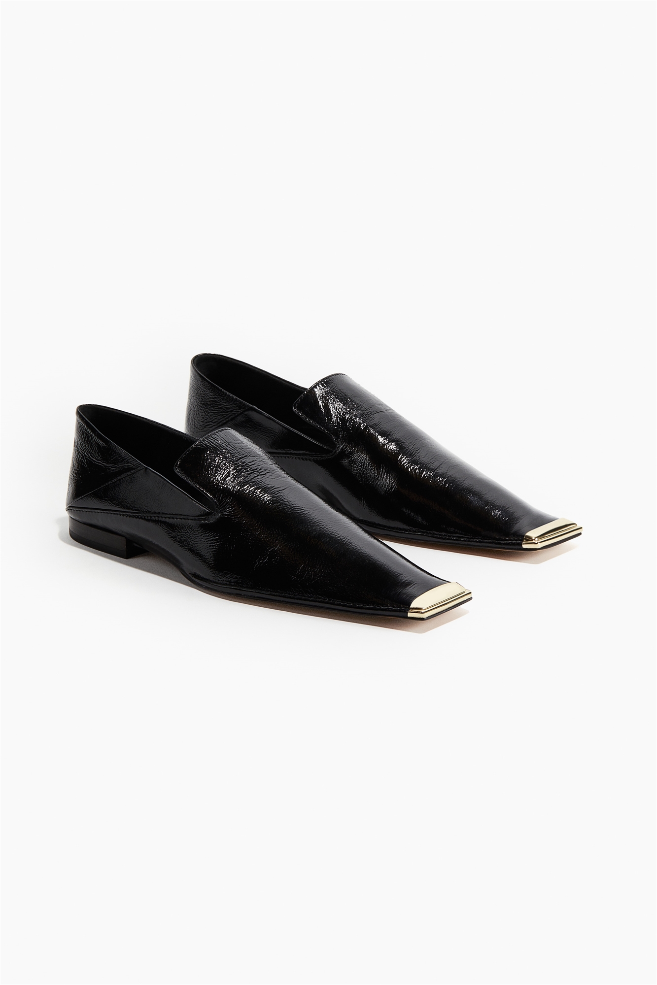 Коллекция Studio. Лоферы из кожи с кракелюрным покрытием. Удлиненные квадратные носки с металлическими колпачками для элегантного вида. Кожаные подкладка, стелька и подошва.