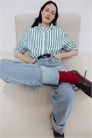 Джинсы с 5 карманами из хлопкового денима с высокой талией и ширинкой на молнии и пуговице. Прямые ноги с широкими подворотами на подоле.