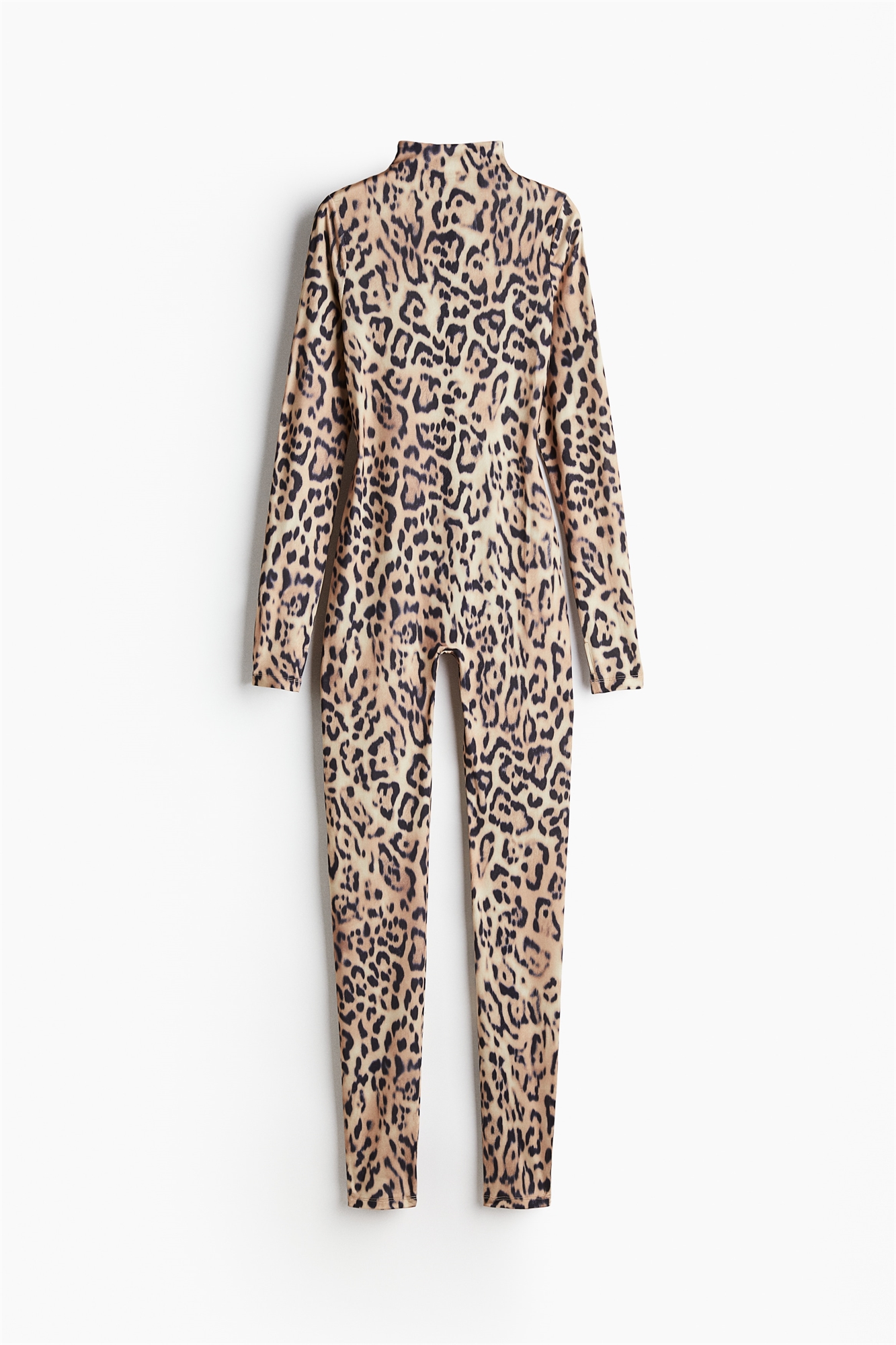 Однотонная модель из джерси с водолазкой и длинными рукавами с отверстиями для больших пальцев. Потайная застежка-молния сзади.