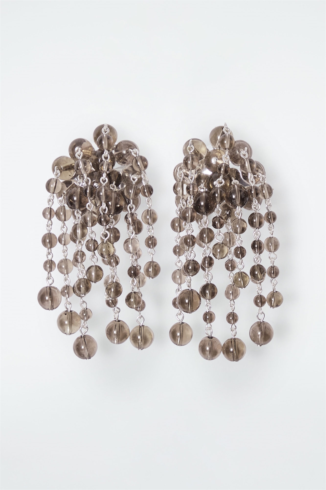 Эта вещь является частью капсулы ATELIER - исследования современного гардероба, основанного на принципах роскоши и исключительного дизайна. CUT Эти яркие серьги-зажимы с кисточками из округлых кварцевых камней каскадом ниспадают на ухо. Носите их с зачесанными назад волосами. КЛЮЧ Каждая бусина вырезана из полудрагоценного природного дымчатого кварца, тонко варьирующегося в оттенках, что создает уникальную, нюансированную отделку. Звенья из переработанной латуни покрыты серебром для долговечности и полированного блеска. Они поставляются в фирменной коробке ATELIER, что делает их продуманным подарком для себя или других. Раковина: 60% полудрагоценных камней, 40% переработанной латуни. Покрытие: 100% серебро. Без учета отделки Длина: 8 см