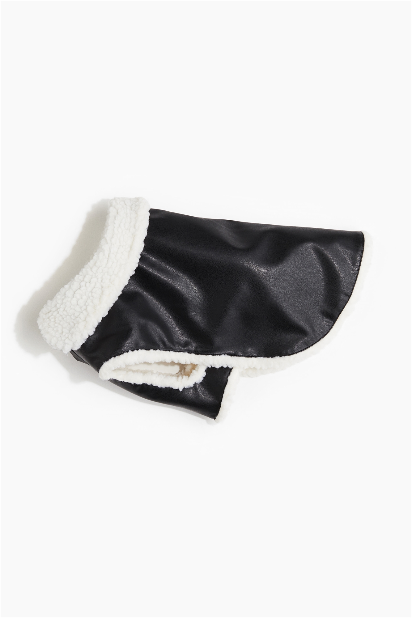 Куртка для собак из ткани с покрытием, с мягким плюшевым воротником и подкладкой. Небольшое отверстие вверху для поводка и открытая часть внизу с отверстиями для передних лап и регулируемым крючком и петлей, застегивающимся на спине.