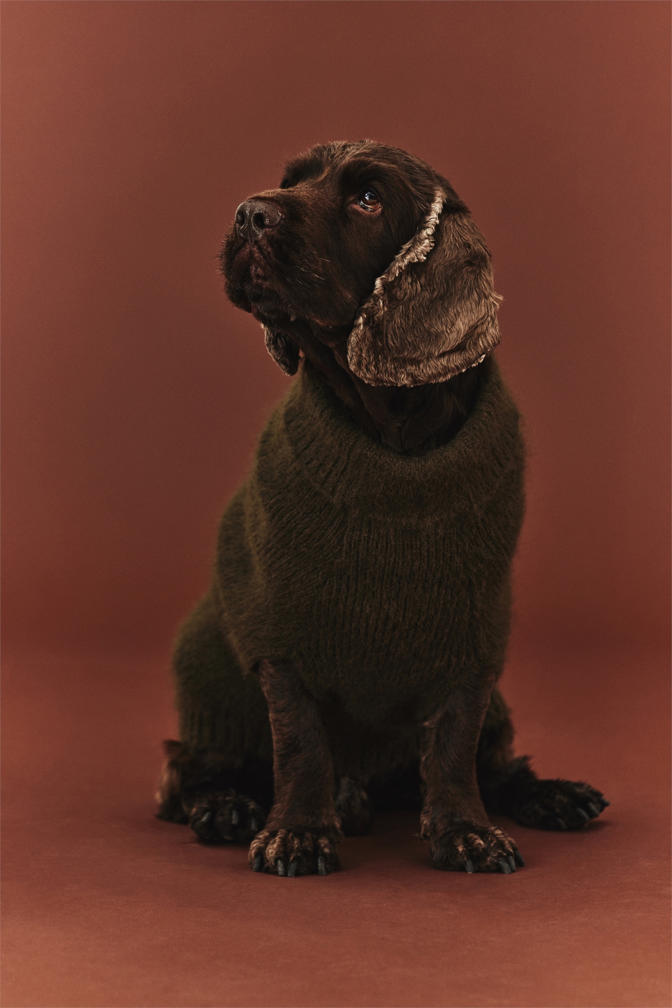Джемпер для собаки из мягкого пушистого трикотажа с ребристой горловиной-поло и ребристой окантовкой по заднему подолу. Отверстия для передних лапок.