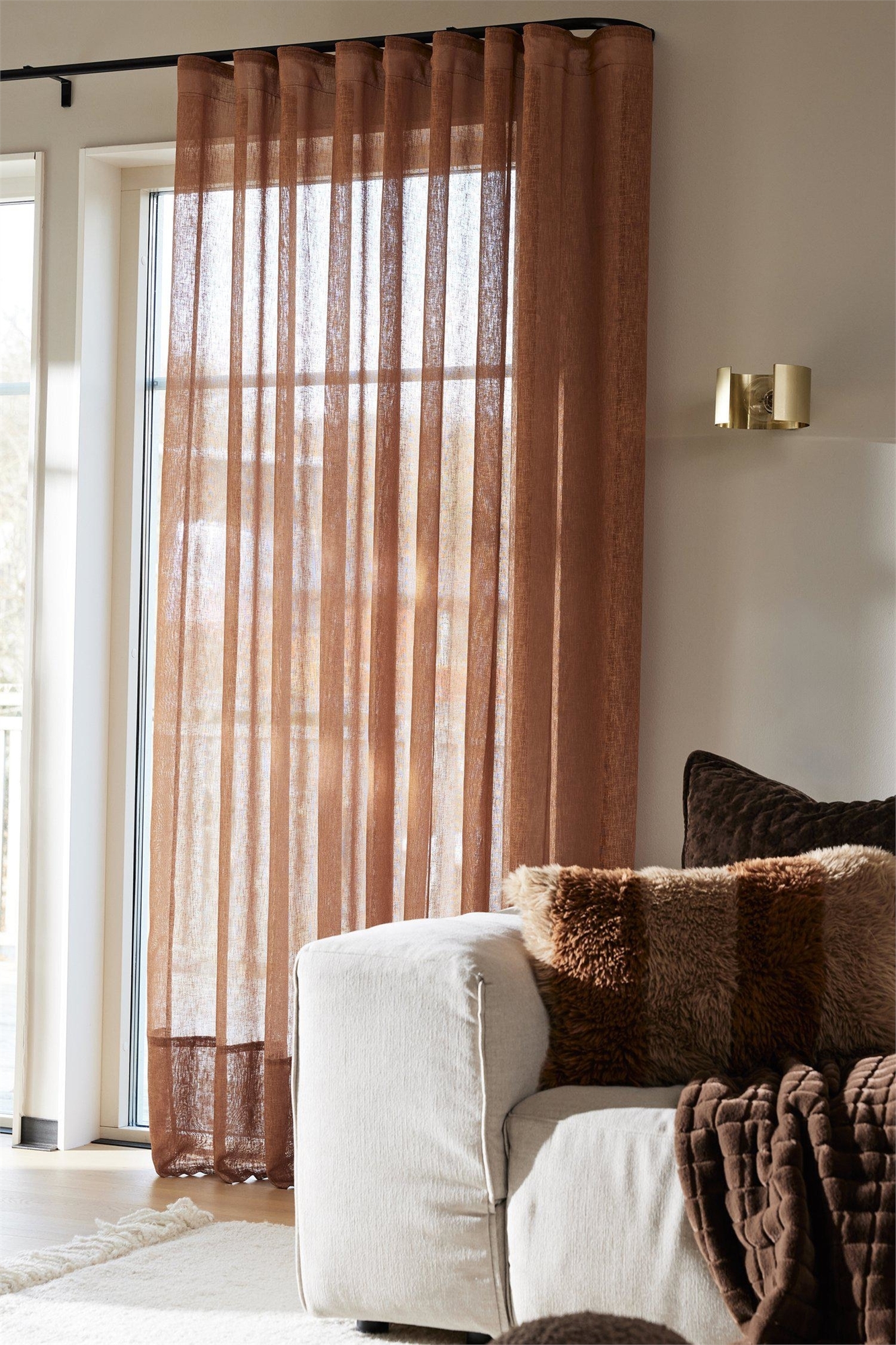 Очень широкая штора из прозрачной ткани, которая фильтрует свет. Полупрозрачная ткань прекрасно фильтрует свет. Благодаря двойной ширине она хорошо подходит для больших оконных проемов. Со шторной лентой в верхней части, прошитыми длинными сторонами и оверлочными швами в конце. Используйте простую крепежную ленту, чтобы отрегулировать длину по мерке. Многофункциональная лента - это гибкое решение, которое позволяет повесить штору на металлические крючки или непосредственно на штангу в зависимости от желаемого эффекта плиссе. Размер шторы составляет 280 x 300 см. Изделие сертифицировано по стандарту STANDARD 100 OEKO-TEX®. Этот сертификат гарантирует, что продукт был протестирован и не содержит веществ, которые могут оказать вредное воздействие на здоровье и окружающую среду.