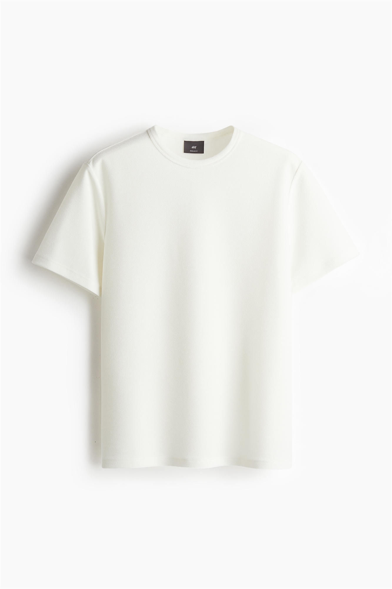 Футболка из джерси средней плотности с мерцающими металлическими нитями. Круглый вырез с ребристой отделкой и прямой подол. Регулярный крой для комфортной носки и классического силуэта.