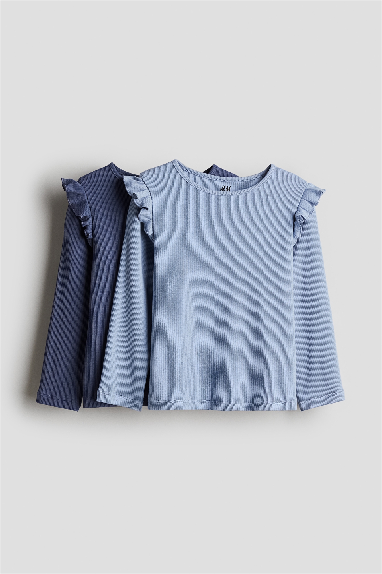 Топы с длинными рукавами из мягкого ребристого хлопкового джерси с круглым вырезом и оборкой на плечах.