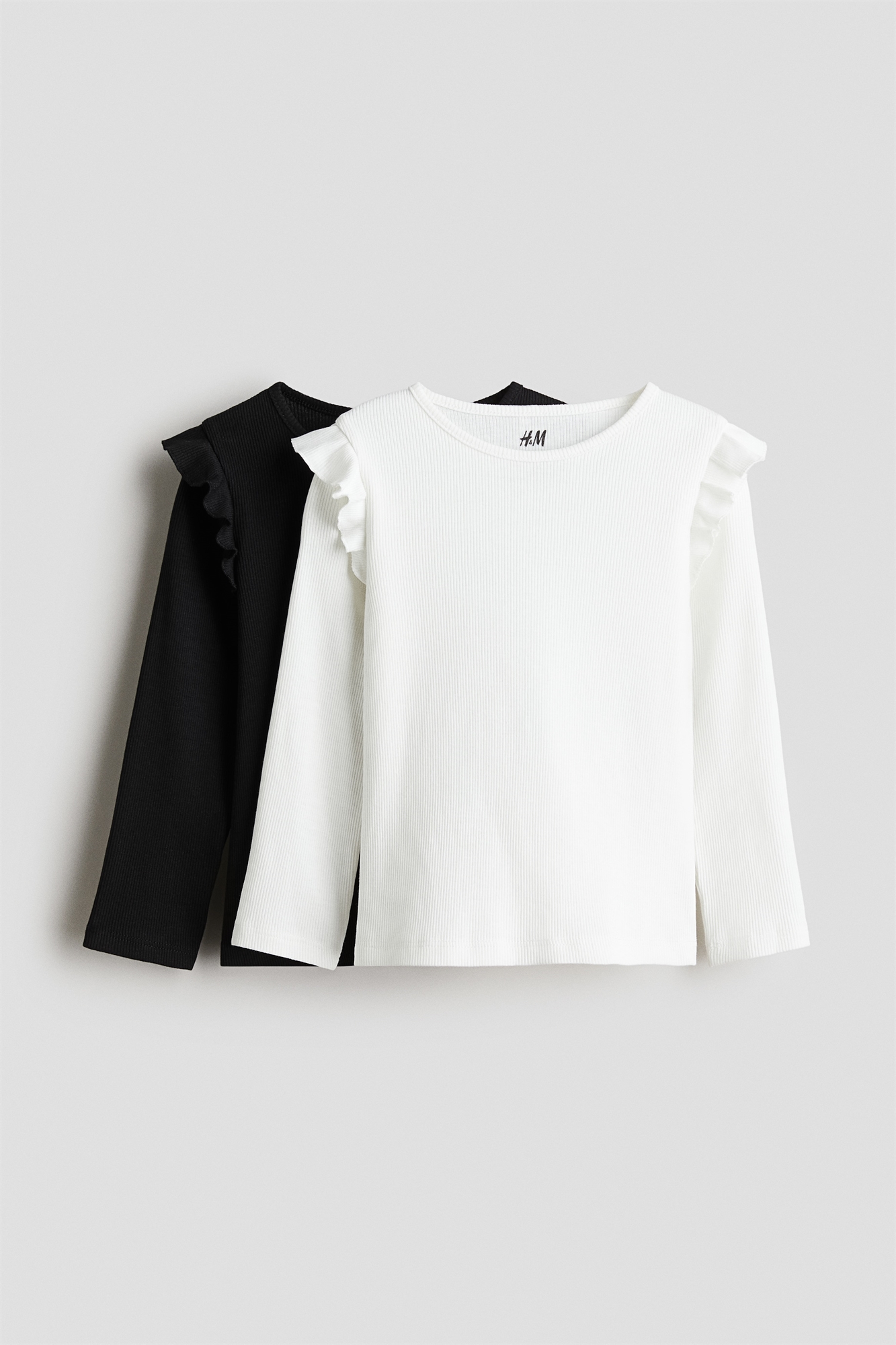 Топы с длинными рукавами из мягкого ребристого хлопкового джерси с круглым вырезом и оборкой на плечах.