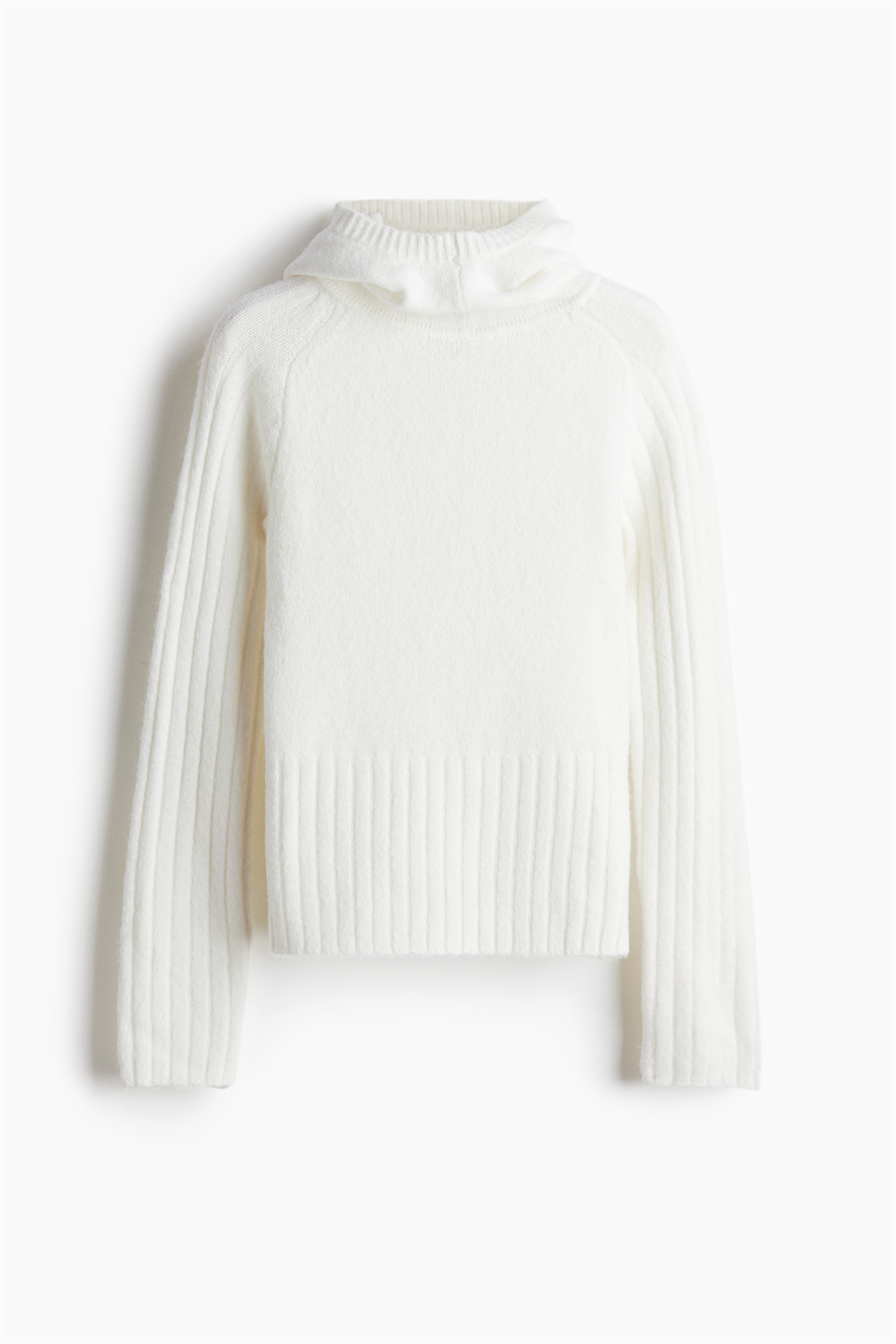 Облегающая толстовка из мягкого тонкого трикотажа с ребрами жесткости. Капюшон-балаклава, длинные рукава реглан и прямой подол.