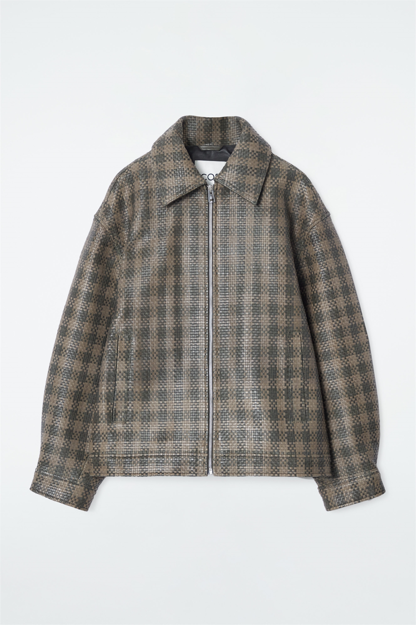 Эта куртка с воротником - изысканное переосмысление классического дизайна. Она изготовлена из мягкой кожи оттенка хаки, которая была искусно переплетена для создания объемного клетчатого узора. Куртка имеет свободный крой, который позволяет легко сочетать ее с многослойными образами, а также неброские прорезные карманы и шпильки на манжетах. Свободный крой Застежка на молнии COS поддерживает ответственное производство через Leather Working Group Внешний материал: 100% кожа. Подкладка: 100% вискоза. Детали исключены/Специальная чистка кожи Длина спины в размере S = 63 см/Модель носит размер S