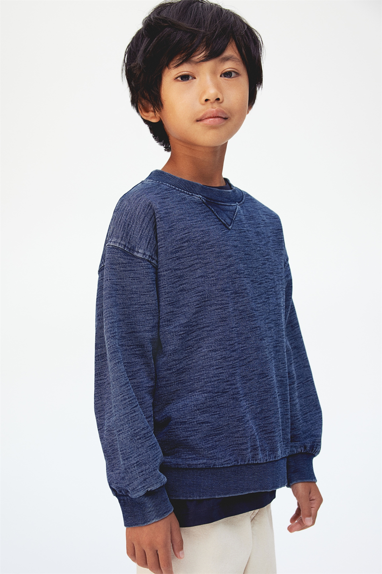 Топ с длинными рукавами из мягкой толстовочной ткани. Круглый вырез с ребристой отделкой, спущенные плечи, манжеты и подол в рубчик.