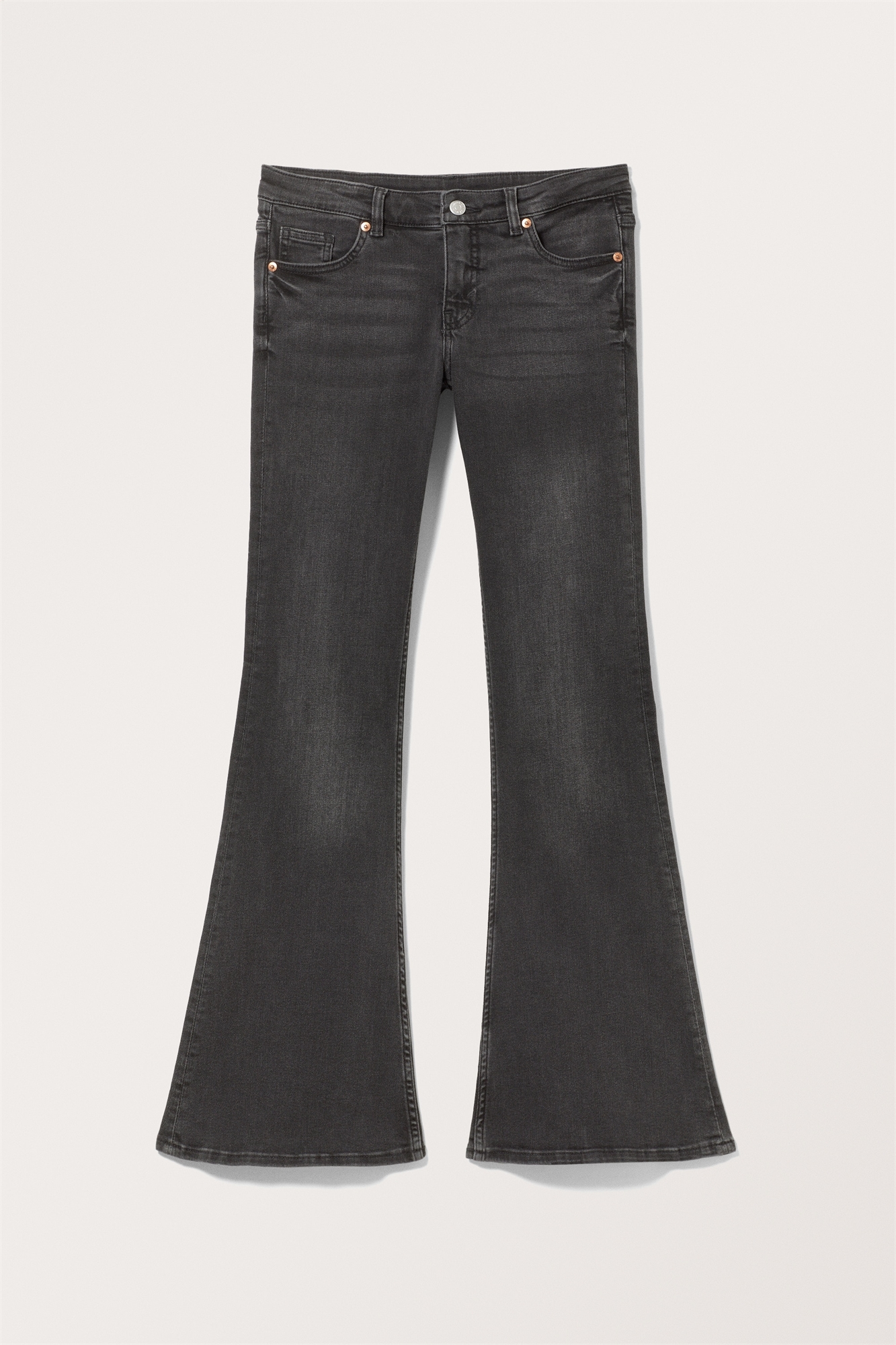Расклешенные джинсы с низкой талией и зауженной посадкой сшиты из комфортной джинсовой ткани стрейч. Они имеют классический дизайн с 5 карманами, расклешенные ноги и хорошо сочетаются с большинством обуви. Зауженный крой. Заниженная талия. Расклешенные штанины. Комфортный стрейч.