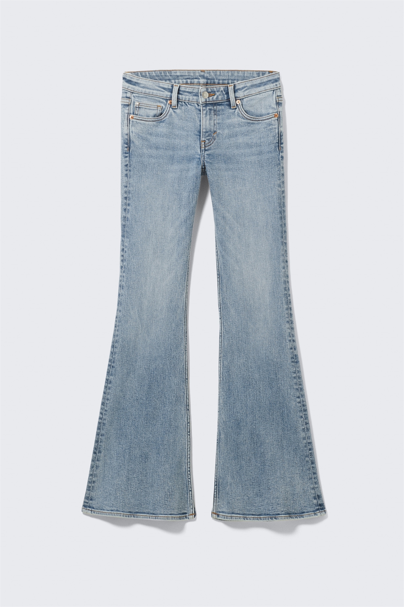 Расклешенные джинсы с низкой талией и зауженной посадкой сшиты из комфортной джинсовой ткани стрейч. Они имеют классический дизайн с 5 карманами, расклешенные ноги и хорошо сочетаются с большинством обуви. Зауженный крой. Заниженная талия. Расклешенные штанины. Комфортный стрейч.