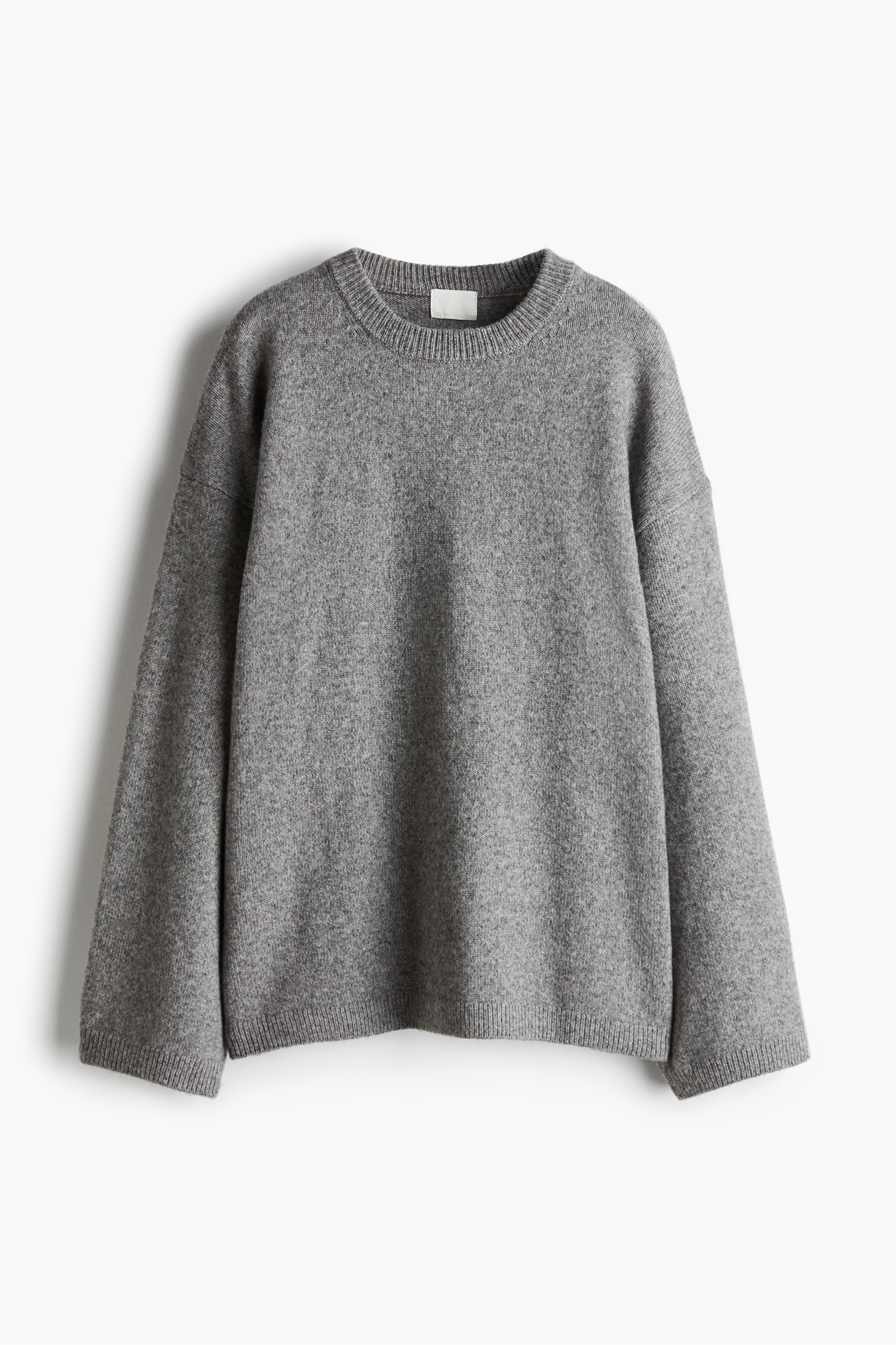 Джемпер оверсайз из мягкого трикотажа с круглым вырезом, спущенными плечами и длинными рукавами. Окантовка вокруг выреза, на манжетах и подоле.