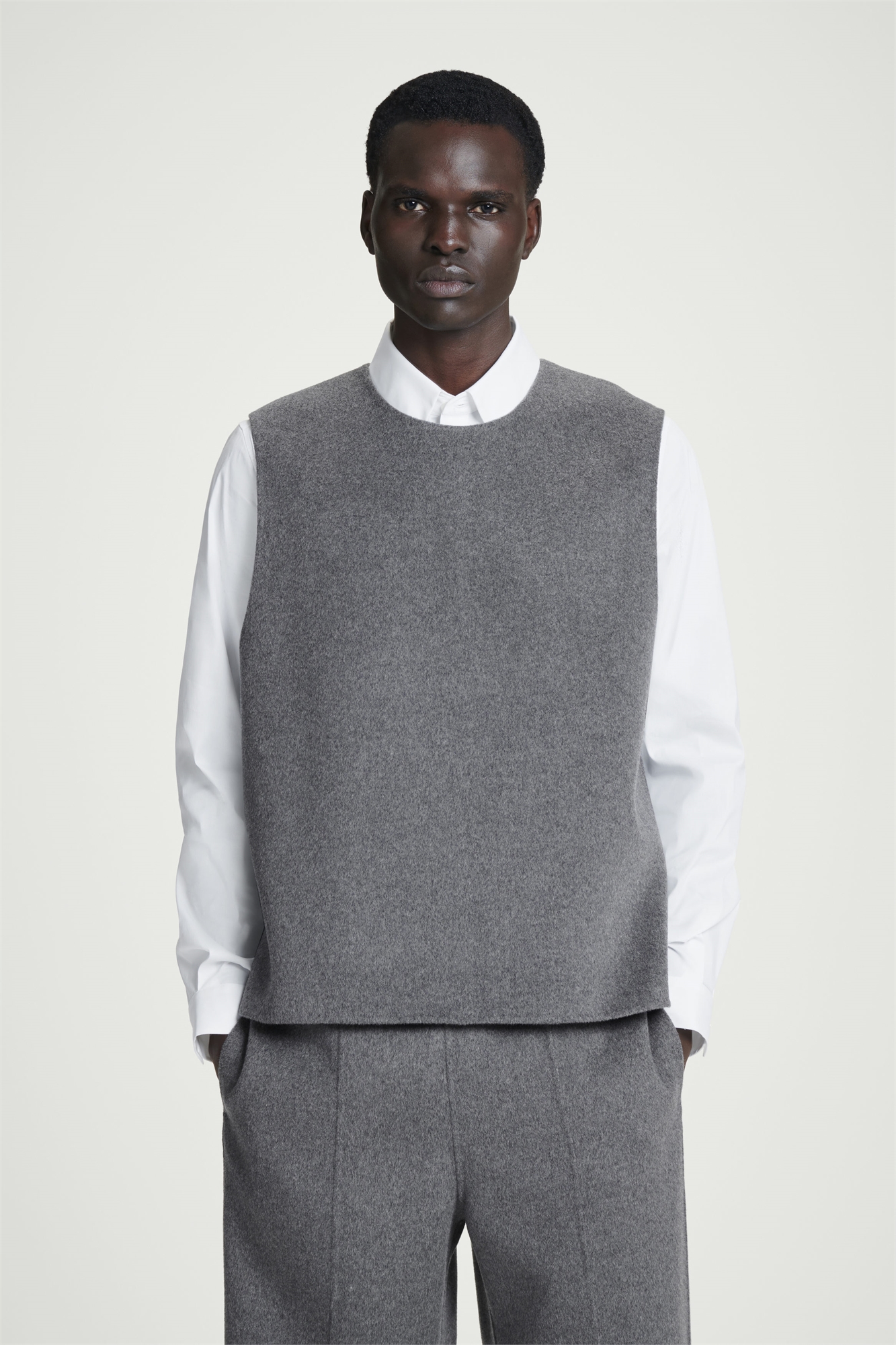 Этот изысканный жилет, предназначенный для ношения отдельно или поверх футболок, изготовлен из шерстяной смеси RWS, которая имеет двойную лицевую отделку. Его универсальный серый оттенок не зависит от сезона и позволяет легко сочетать его с остальным гардеробом. Носите его в комплекте с соответствующими брюками. Свободный крой Изделие содержит шерстяное волокно Responsible Wool Standard TE-00047206 (RWS), произведенное на фермах, сертифицированных в соответствии с требованиями к содержанию животных и управлению земельными ресурсами Оболочка: 60% шерсть RWS, 40% TENCEL™ Lyocell. Без учета отделки / Сухая чистка Длина по спинке в размере M составляет 66,5 см / Модель носит размер M