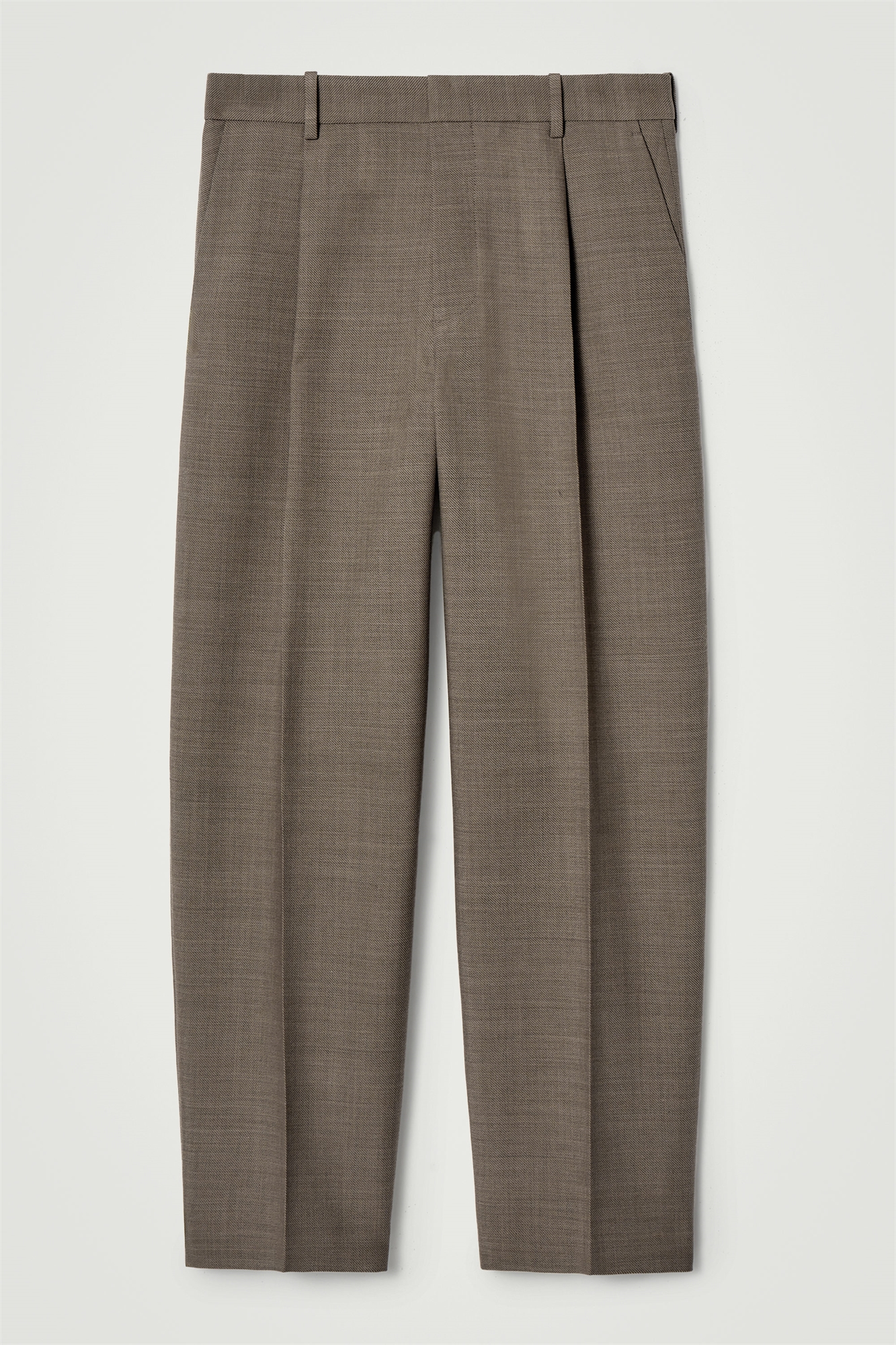 Коллекция одежды COS демонстрирует строгий крой и первоклассные ткани. Эти брюки из саржи с шерстяным блендом сшиты в непринужденном стиле и имеют плиссированные, зауженные к низу ноги, которые переходят в обувь. Они оснащены множеством карманов и регулируемым поясом для индивидуальной посадки. Носите их как костюм с соответствующим блейзером. Расслабленный крой Застежка на крючок и молнию Лучшая альтернатива обычному полиэстеру - переработанный полиэстер, изготовленный из отходов, полученных до и после переработки отходов Оболочка: 52% переработанного полиэстера, 42% шерсти RWS, 6% эластана. Без учета отделки / Сухая чистка Внутренняя длина ноги размера EU 48 составляет 75 см / Модель носит размер EU 48