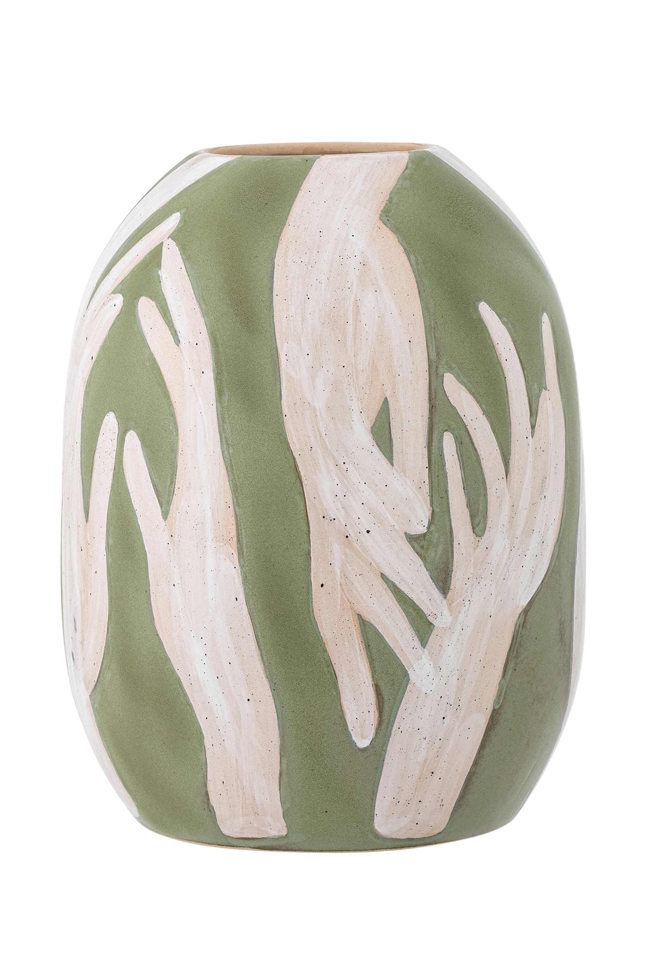 Ваза Adalena от Bloomingville - это элегантное изделие, в котором соединились мастерство и свежие зеленые цвета. Украшенная нарисованными вручную танцующими руками, эта ваза представляет собой уникальное произведение искусства, идеально подходящее для демонстрации ваших любимых цветов. Выделите свою комнату этим привлекательным шедевром уже сегодня! D23.5xH30.5 см.