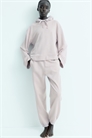 Джоггеры с расслабленной посадкой из толстоватой ткани с мягким начесом внутри. Высокая талия с эластичным швом и потайным шнурком, незаметные боковые карманы и эластичная резинка на подоле.