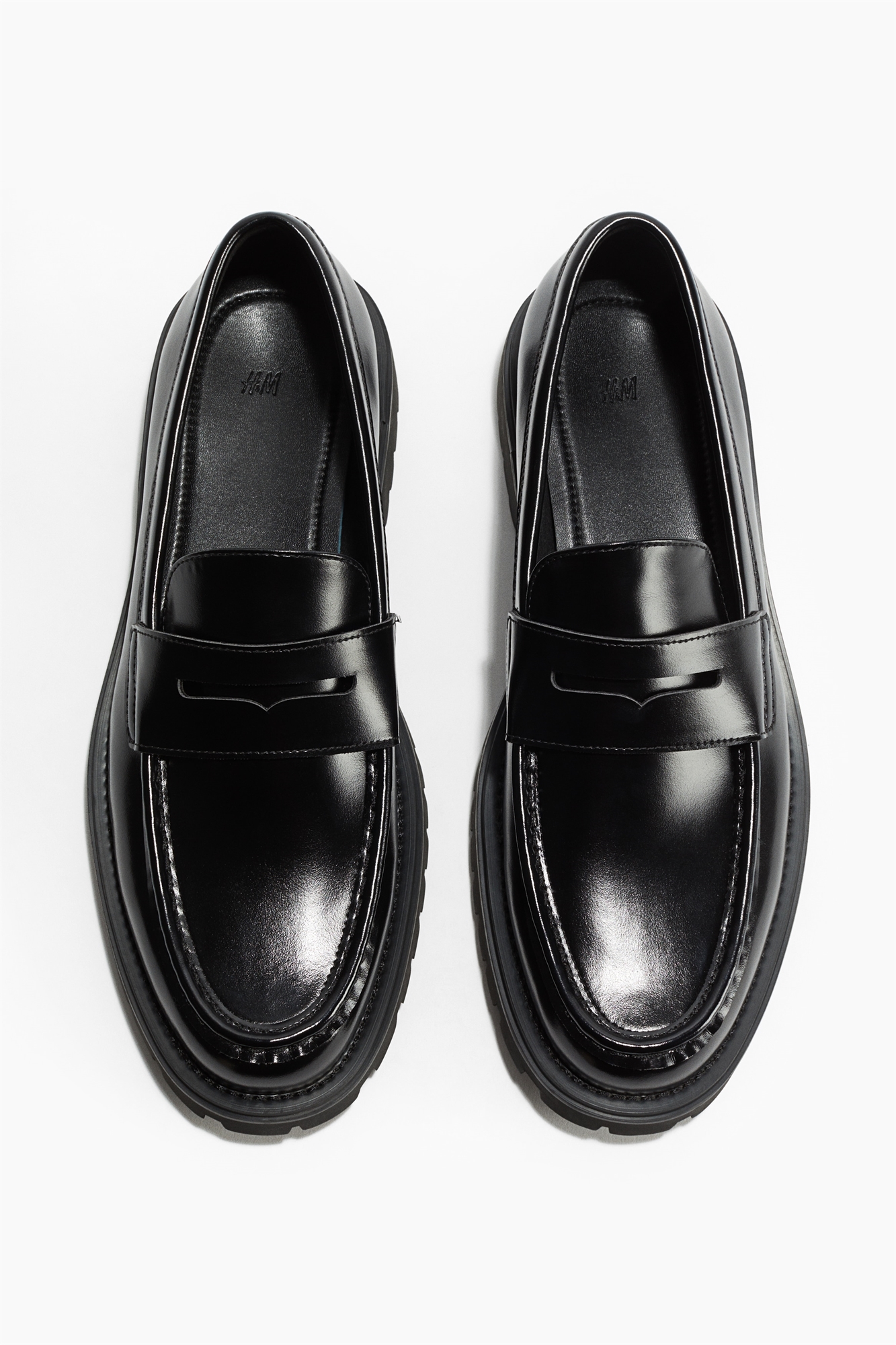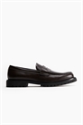 Лоферы с декоративной вкладкой и швом спереди. Подкладка из хлопкового холста и толстая узорчатая подошва. Каблук 3 см.