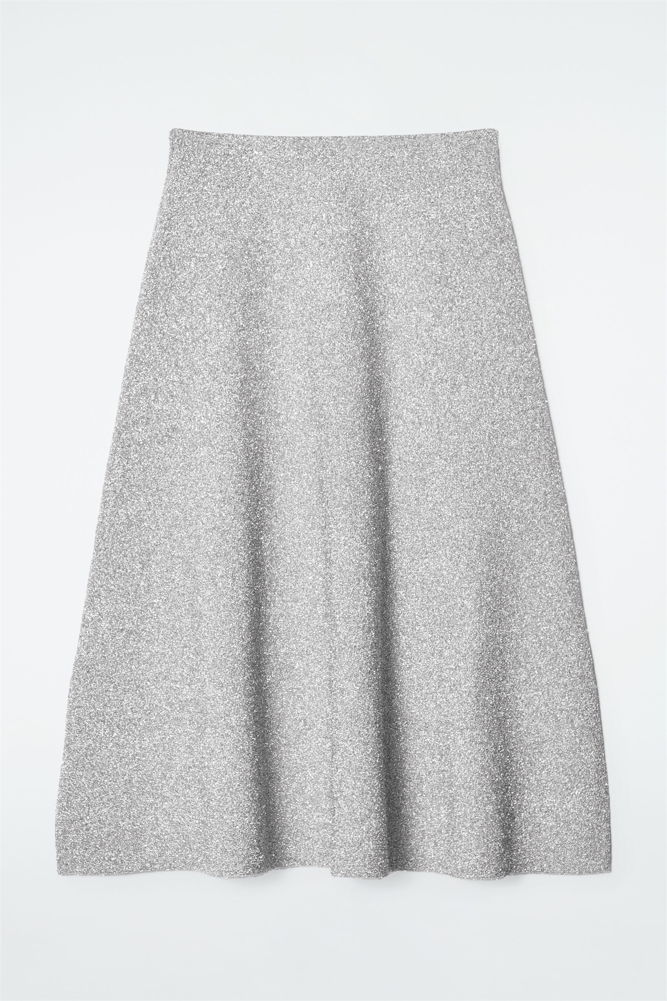 Эта юбка-миди, предваряющая сезон вечеринок, связана из первоклассной мериносовой шерсти с металлизированными волокнами, которые красиво переливаются на свету. Она имеет двойную лицевую сторону с мягкой внутренней частью верблюжьего оттенка и объемный фасон A-line. Для максимального эффекта сочетайте его с джемпером в тон. Изделие содержит шерстяное волокно Responsible Wool Standard TE-00047206 (RWS), произведенное на фермах, сертифицированных в соответствии с требованиями к благополучию животных и землепользованию Шелл: 55% мериносовой шерсти, 23% металлизированного волокна, 18% переработанного полиэстера, 3% переработанного полиамида (переработанного нейлона), 1% эластана. Без учета отделки / Машинная стирка Длина по спинке размера S составляет 80 см / Модель носит размер S