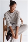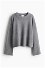Джемпер из мягкого трикотажа с круглым вырезом в рубчик, спущенными плечами и длинными рукавами. Узкий рубчик на манжетах и подоле.
