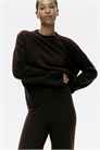 Джемпер из мягкого трикотажа с круглым вырезом в рубчик, спущенными плечами и длинными рукавами. Узкий рубчик на манжетах и подоле.