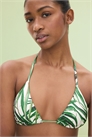 Треугольный бикини на подкладке, без проводов, с чашечками со съемными вкладышами, придающими форму бюсту и обеспечивающими хорошую поддержку. Завязки сзади и на шее.