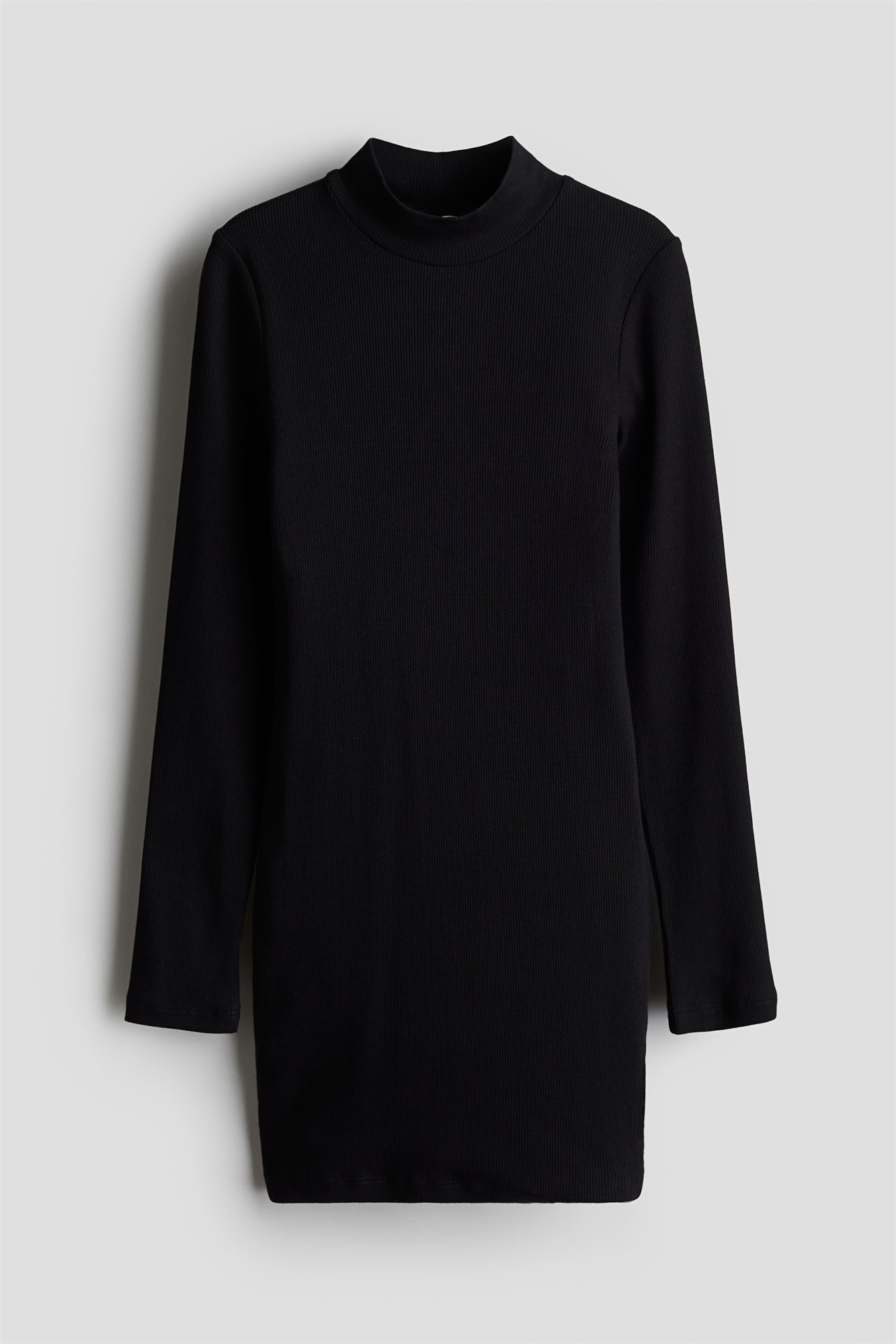 Платье из мягкого ребристого хлопкового трикотажа с черепаховой горловиной и длинными рукавами.