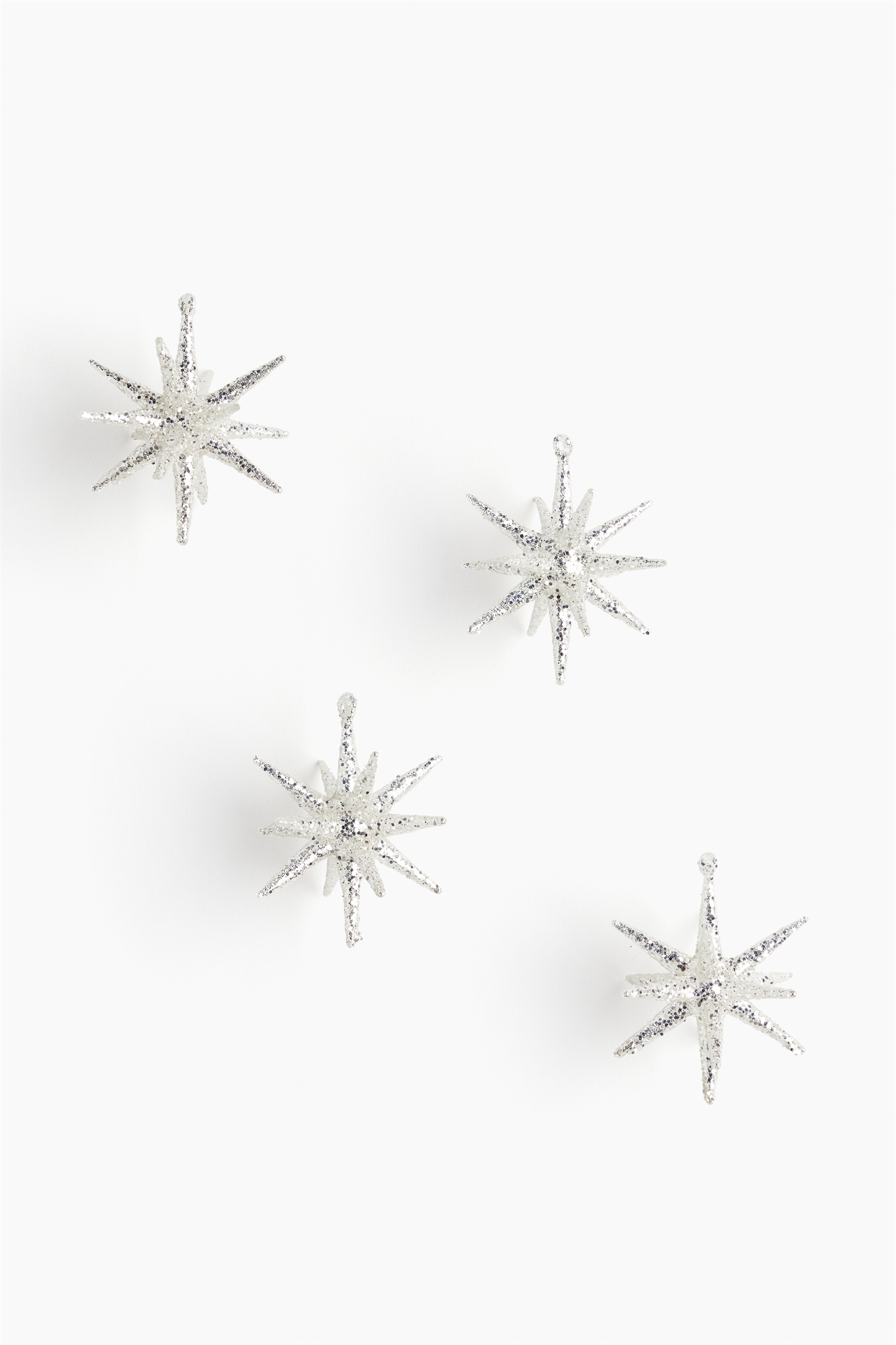 Этот набор из четырех звезд от House Doctor сделан из стекла, покрытого блестками. Повесьте их на ветку, на елку или украсьте ими обеденный стол для праздничных посиделок. Для создания легкого образа зимней страны чудес сочетайте звезды с белыми оттенками и натуральными материалами. Диаметр 7,5 см.