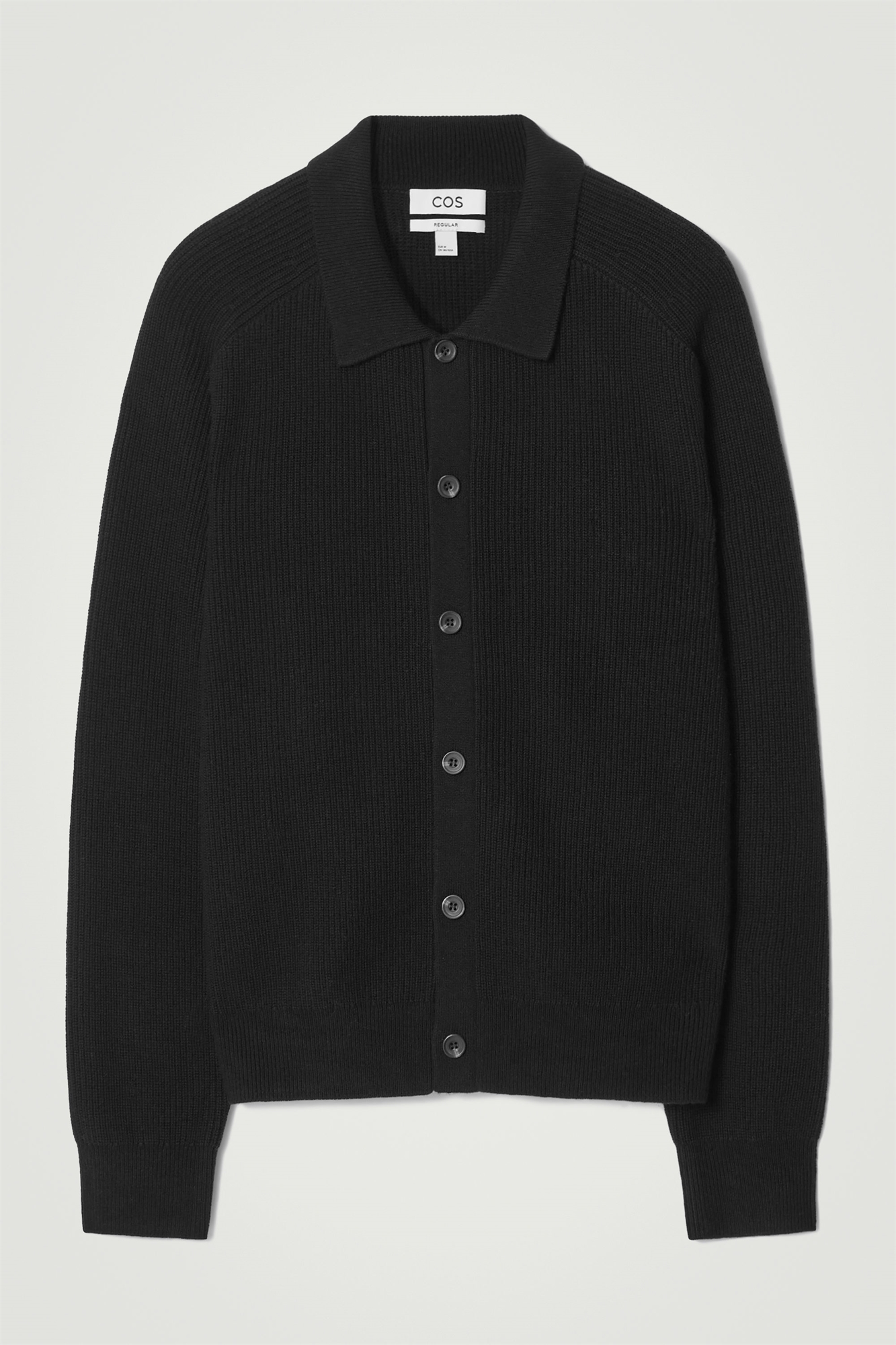 Этот черный кардиган связан из первоклассного сочетания шерсти, сертифицированной RWS, и кашемира GCS, обладающего роскошной мягкостью на ощупь. Ребристая отделка и тональная строчка - неброские штрихи. Это изысканный слой для переходных месяцев. Регулярный крой Застежка на пуговицы В составе этого изделия содержится шерстяное волокно Responsible Wool Standard TE-00047206 (RWS), полученное с ферм, сертифицированных в соответствии с требованиями к благополучию животных и землепользованию Состав: 90% шерсть RWS, 10% кашемир GCS. Без учета отделки / Машинная стирка Длина по спинке для размера M составляет 64 см / Модель носит размер M
