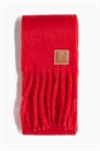Шарф из мягкой пушистой ткани с длинной бахромой по коротким сторонам. Имеет небольшую аппликацию с тисненой монограммой.