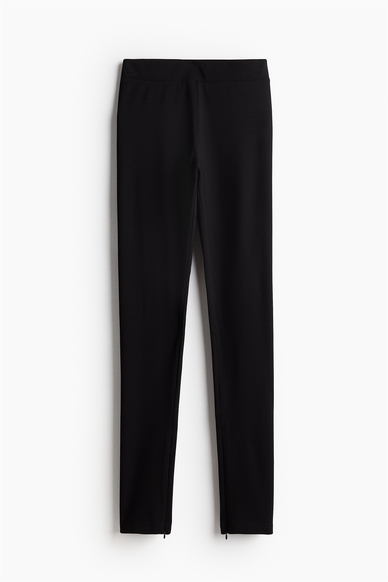 Леггинсы из плотного трикотажа с эластичной вставкой на талии и потайной застежкой-молнией по краям.