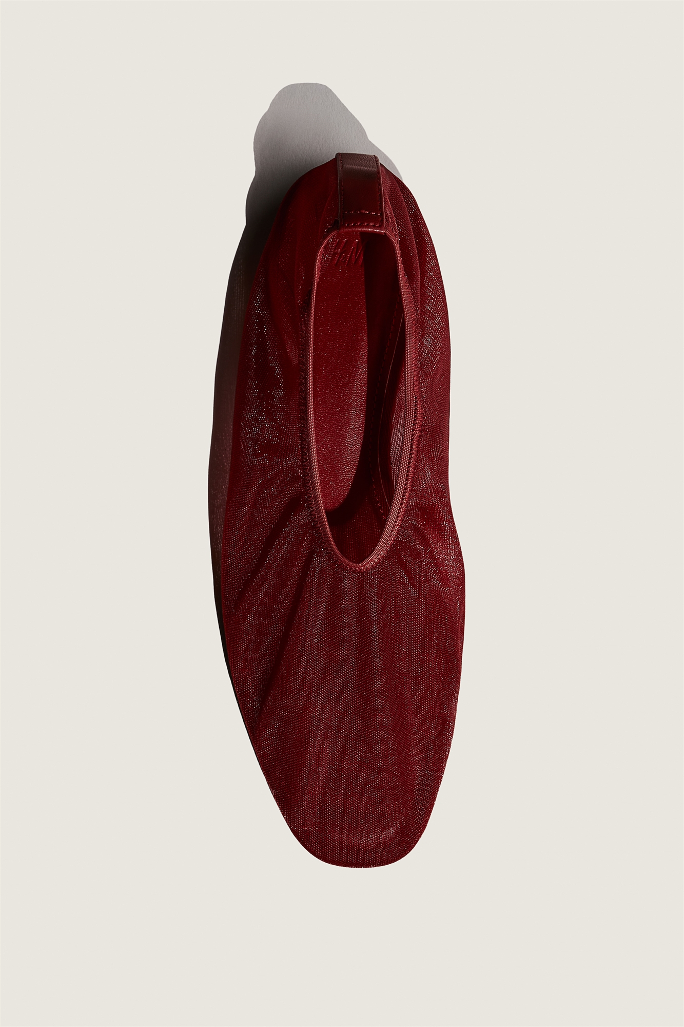 Балетки из сетки с узкой эластичной резинкой в верхней части.