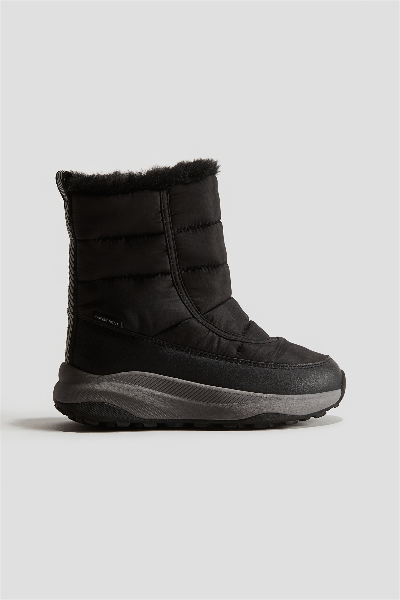 Снежные ботинки с теплой подкладкой из стеганого нейлона с водонепроницаемой мембраной, чтобы ноги вашего ребенка оставались сухими во время снега и дождя. Застежка-молния с одной стороны и петля из гросгрейн сзади. Светоотражающие детали для дополнительной видимости. Подкладка из ворсистой ткани и стелька из технической пены Cellfit™ для дополнительного комфорта. Мохнатая подошва с рисунком для надежного сцепления с поверхностью. Высота подошвы 3,5 см.