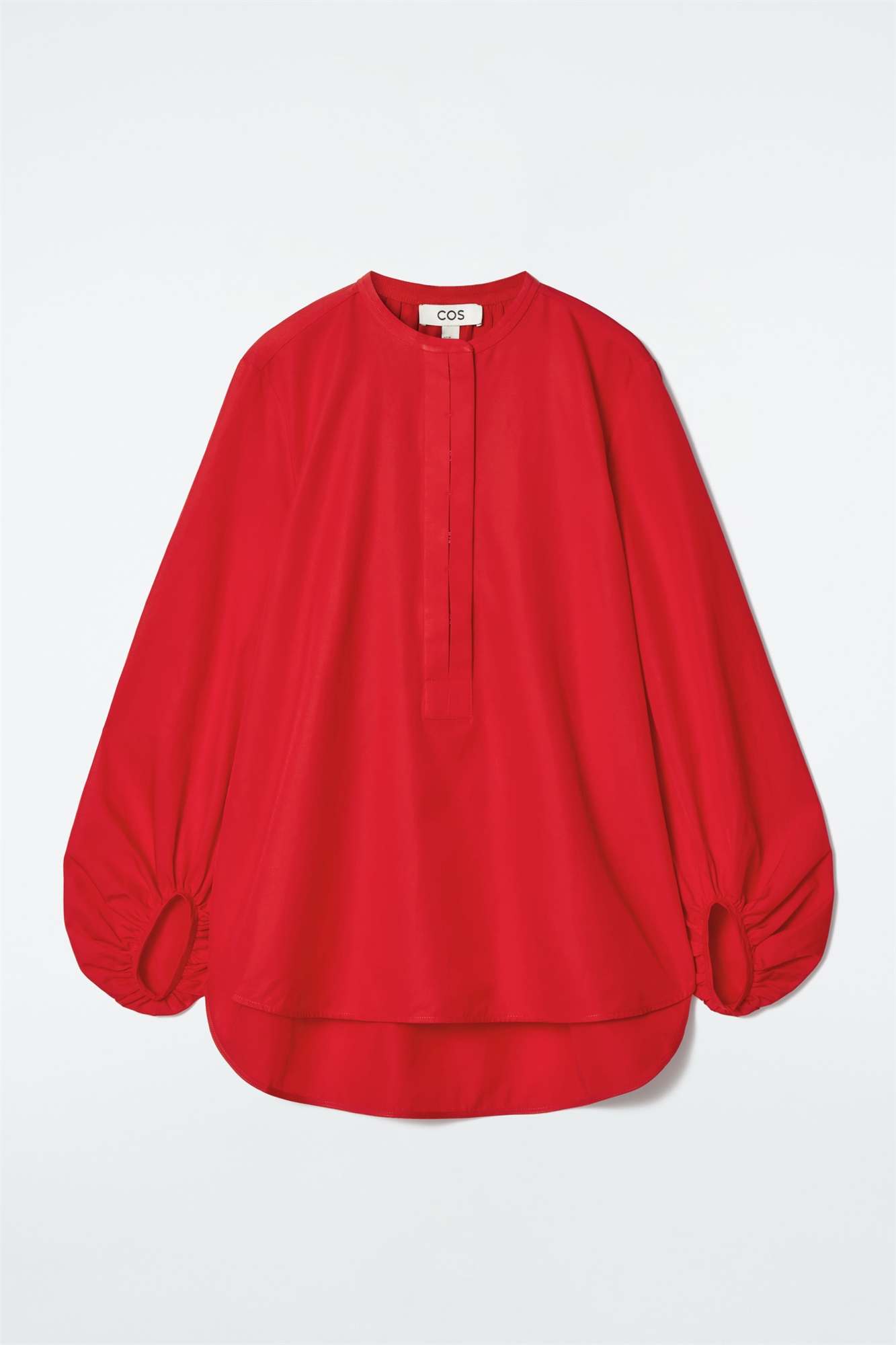 Эта блузка из легкой смеси шелка и тутового дерева с длинными рукавами и сборками у выреза для придания объема. Она имеет воротник "дедушка", скрытую полупетлю и изогнутый ступенчатый подол. Свободный крой Застежка на пуговицы Ткань: 52% шелка малбери, 48% хлопка. Переплет: 100% хлопок. Без учета отделки / Машинная стирка Длина по спинке для размера EU 36 составляет 79,5 см / Модель носит размер EU 36