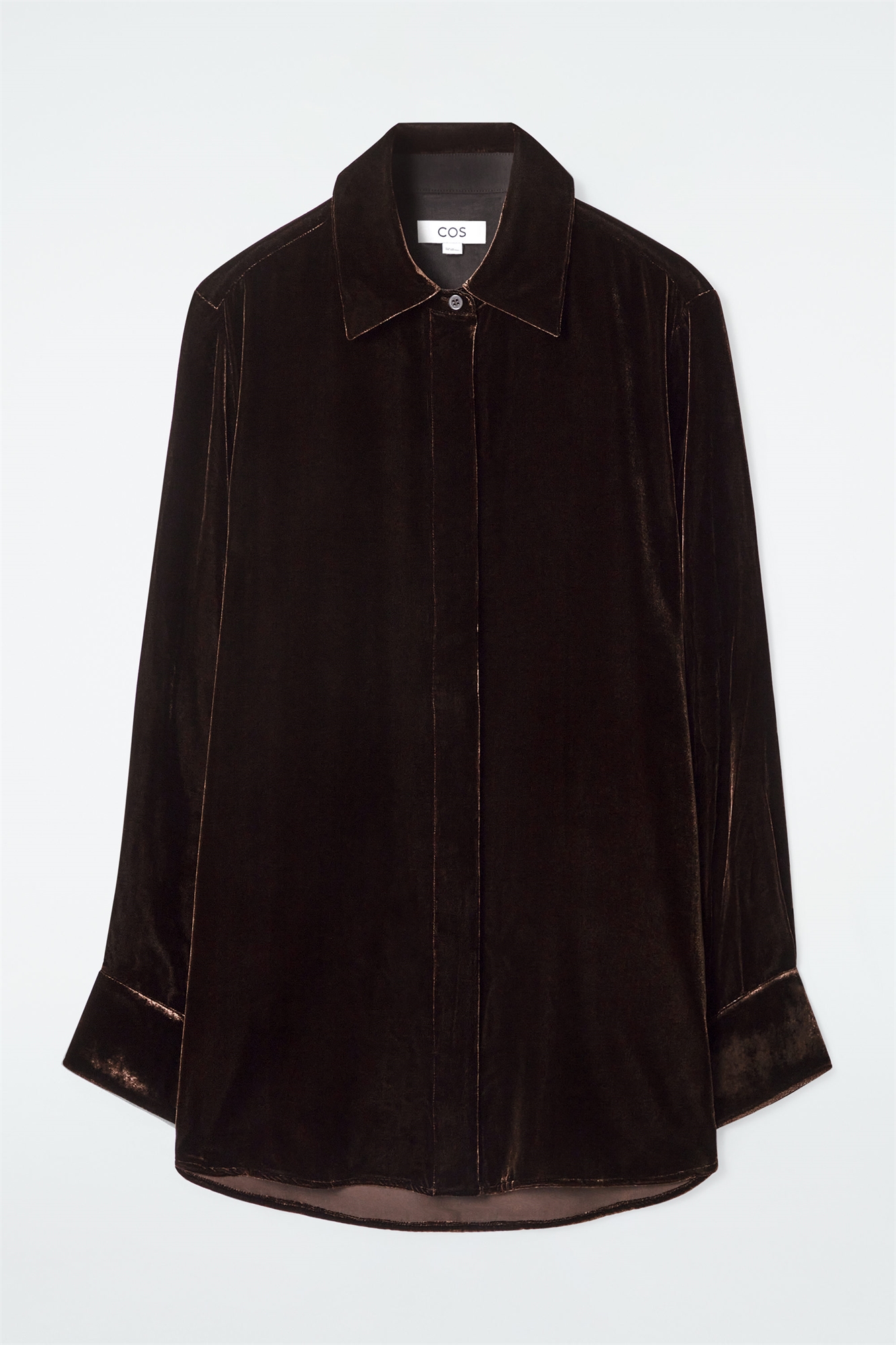 Команда женской одежды исследует богатую тактильность бархата в предстоящем сезоне. Эта рубашка, выполненная в непринужденной форме, изготовлена из плюшевой смеси шелка и тутового дерева, которая дополняет цвет красного дерева. Сочетайте ее с соответствующими брюками. Свободный крой Застежка на пуговицы Изогнутый подол Материал: 80% вискоза, 20% шелк малбери. Без учета отделки / Химическая чистка Длина по спинке для размера EU 36 составляет 77 см / Модель носит размер EU 36