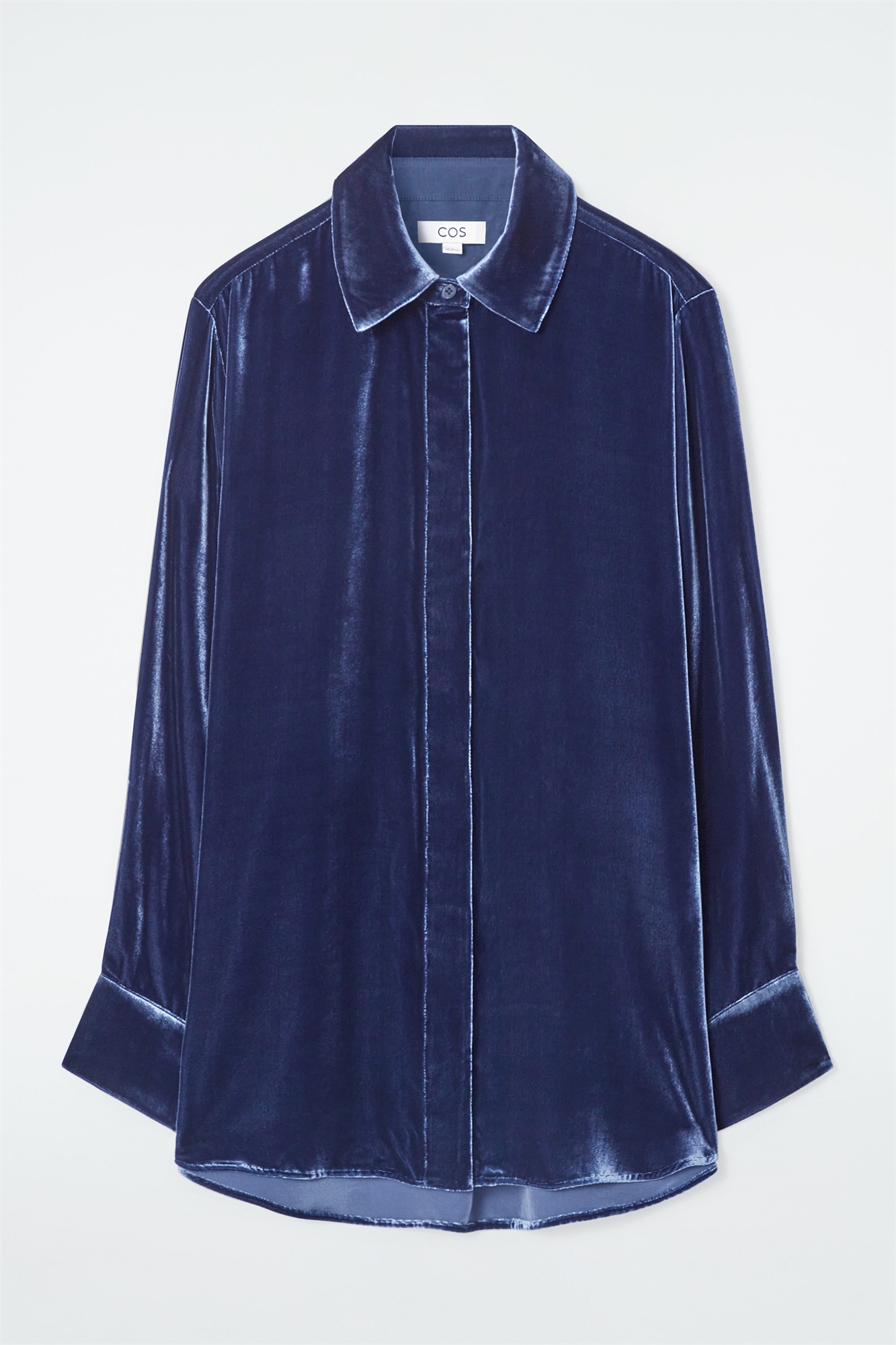 Команда женской одежды исследует богатую тактильность бархата в предстоящем сезоне. Эта рубашка, выполненная в непринужденной форме, изготовлена из плюшевой смеси шелка и тутового дерева, которая дополняет драгоценный сапфировый оттенок. Сочетайте ее с соответствующими брюками. Свободный крой Застежка на пуговицы Изогнутый подол Ткань: 80% вискоза, 20% шелк малбери. Без учета отделки / Химическая чистка Длина по спинке для размера EU 36 составляет 77 см / Модель носит размер EU 36