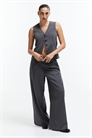 Свободные брюки из саржи с высокой талией, ширинкой на молнии и потайной застежкой на пуговицы и крючки. Диагональные боковые карманы, втачные задние карманы и широкие штанины со складками спереди и складками спереди и сзади.