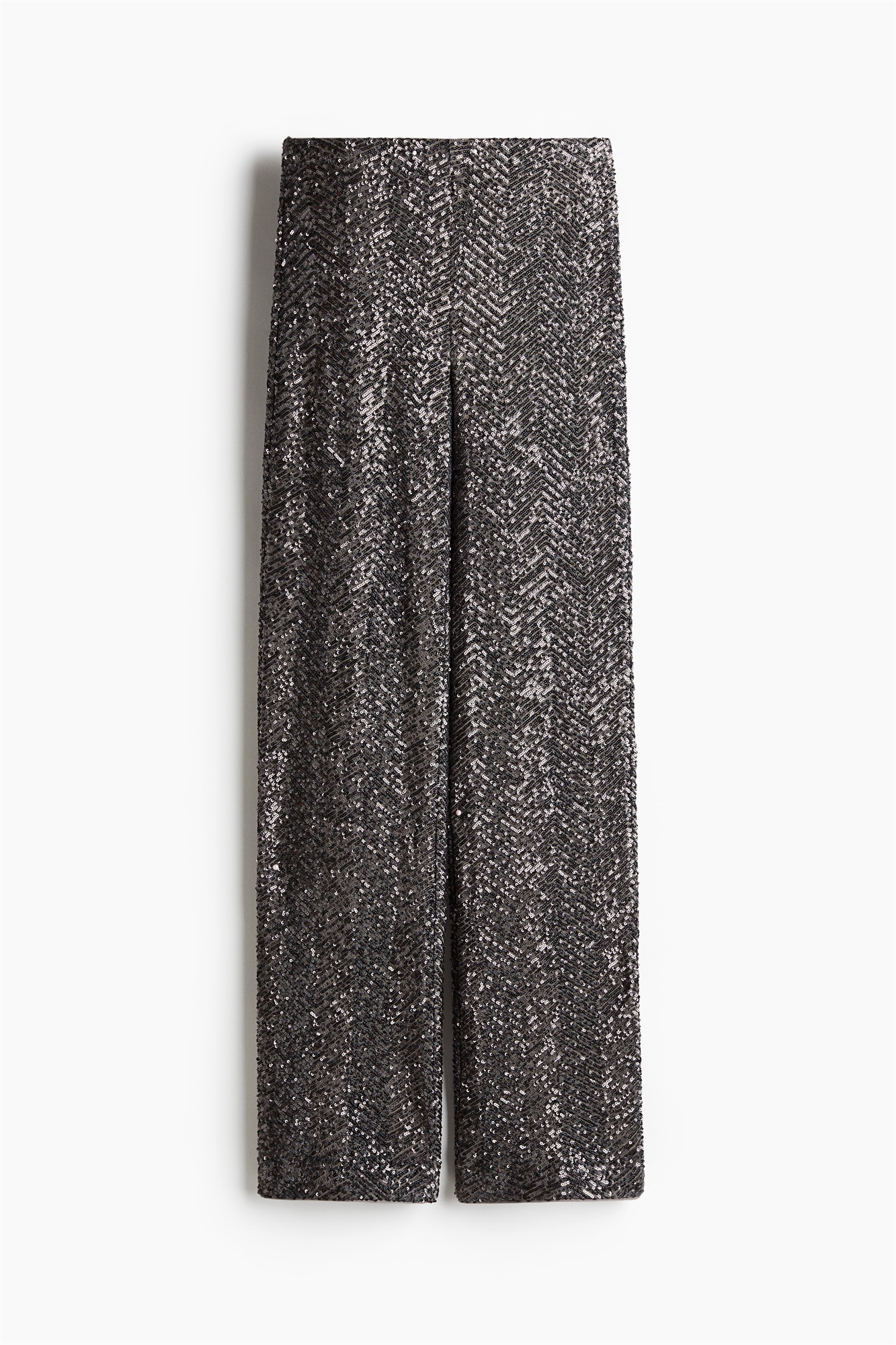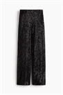 Брюки из блестящей сетки с высокой талией и скрытой резинкой, прямые ноги. Подкладка из джерси.