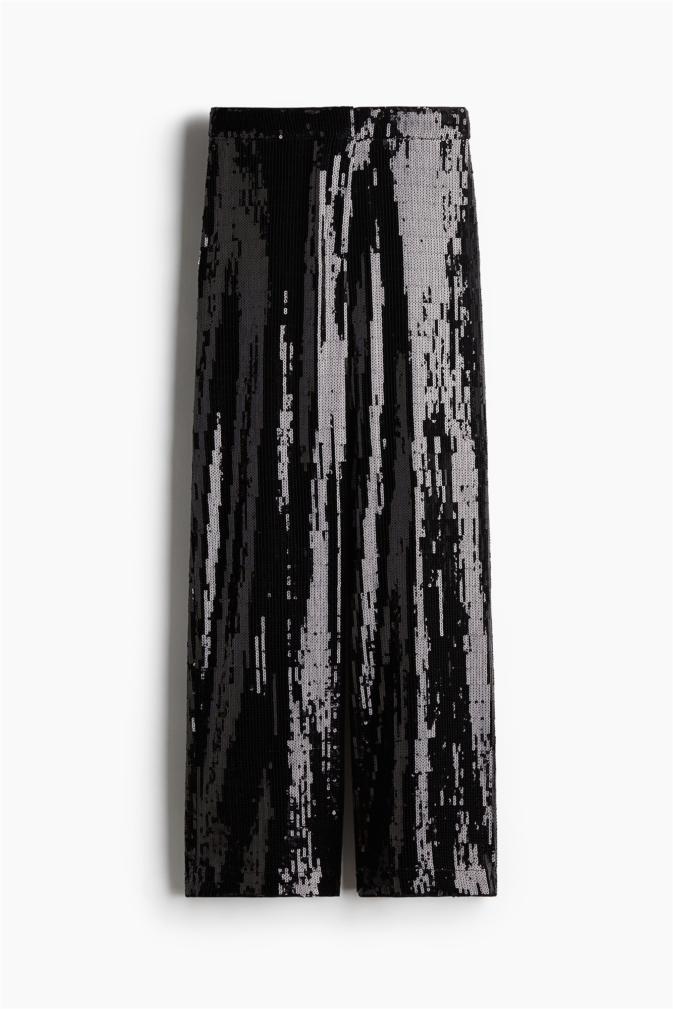 Брюки из блестящей сетки с высокой талией, вытачками сзади и ширинкой на молнии со скрытой пуговицей и застежкой на крючок. Подкладка из джерси.