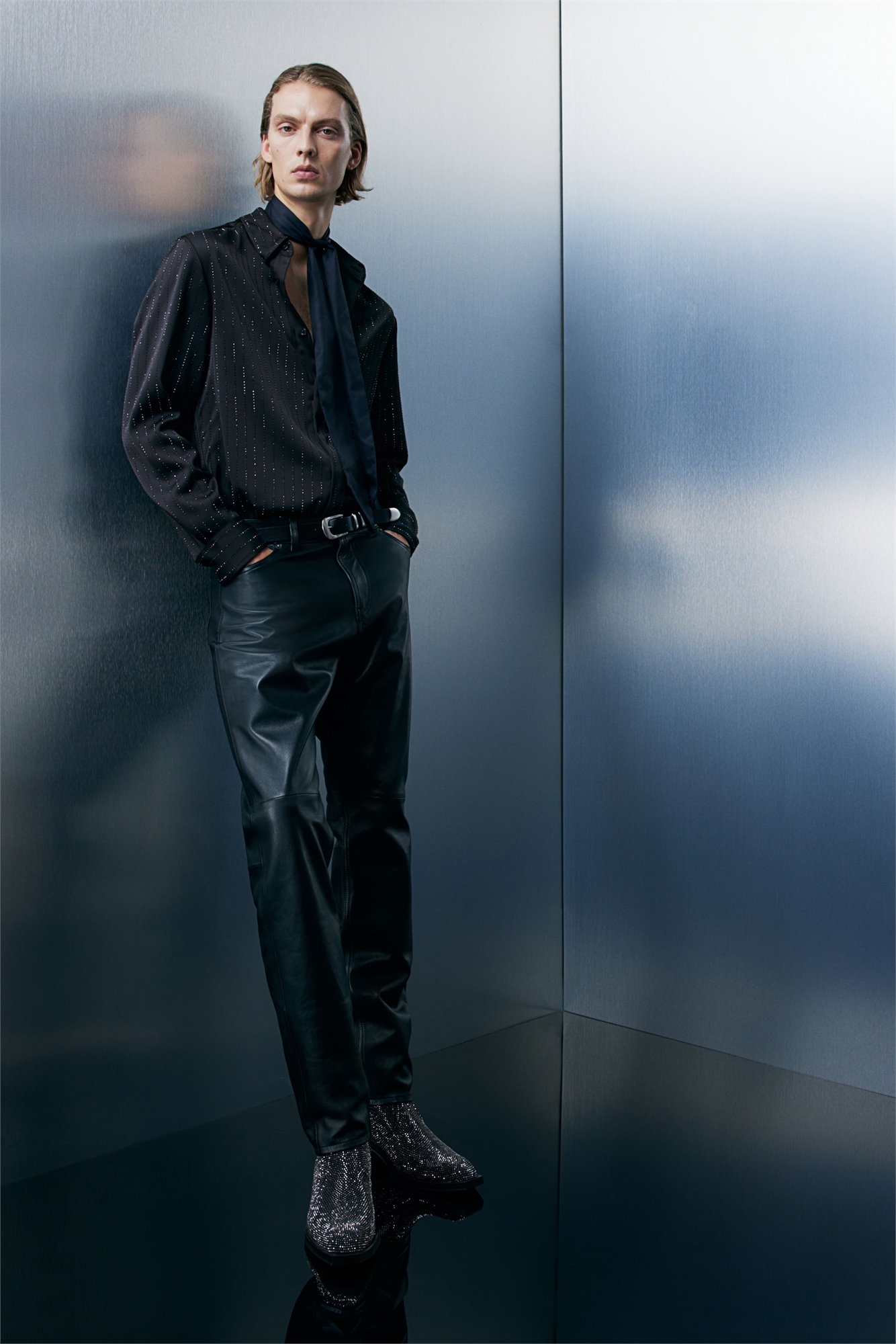 Рубашка из мягкого полотна, украшенная стразами. Отложной воротник, потайная застежка на пуговицах, длинные рукава, манжеты на пуговицах и закругленный подол. Регулярный крой для комфортной носки и классического силуэта.