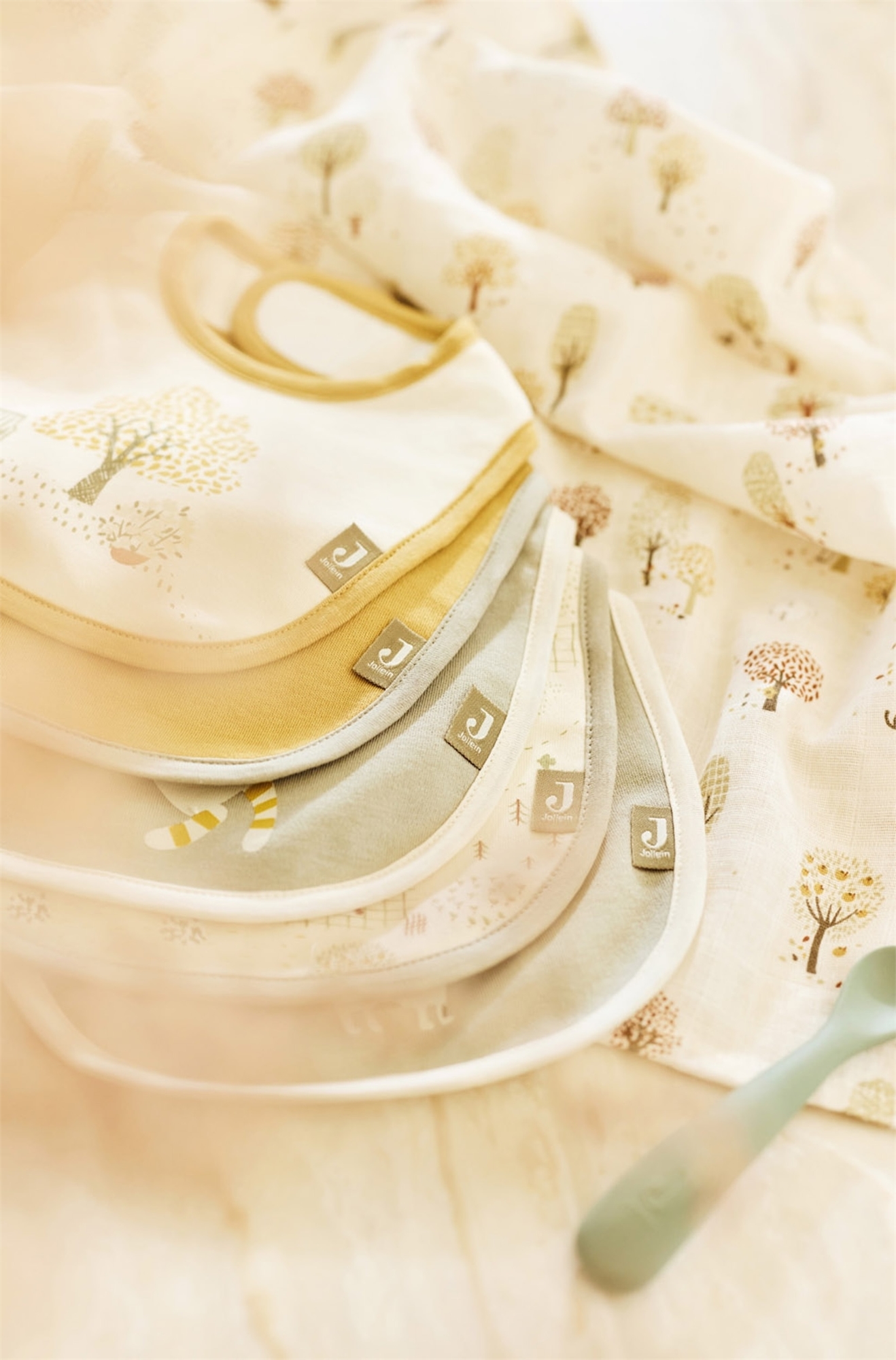 Эти непромокаемые нагрудники в количестве 5 штук с практичной застежкой-липучкой значительно облегчают родительские обязанности! Благодаря этим нагрудникам одежда вашего малыша останется чистой и сухой, а застежка-липучка позволяет легко надевать и снимать их. Меньше хлопот и больше качественного времени с малышом! Каждый нагрудник в упаковке из 5 штук имеет уникальный дизайн, доступный в следующих тематиках: цветы в стиле ретро, фанки, мишка с урожаем и животные. Размер: 22x27 см.