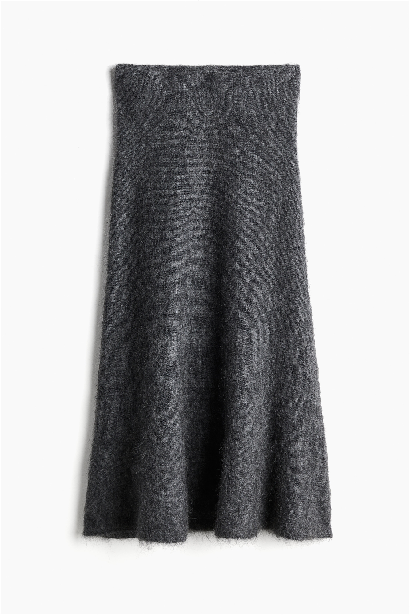 Юбка длиной до щиколоток из мягкого трикотажа с содержанием мохера и шерсти. Регулярная посадка, эластичный пояс и расклешенный подол.
