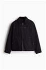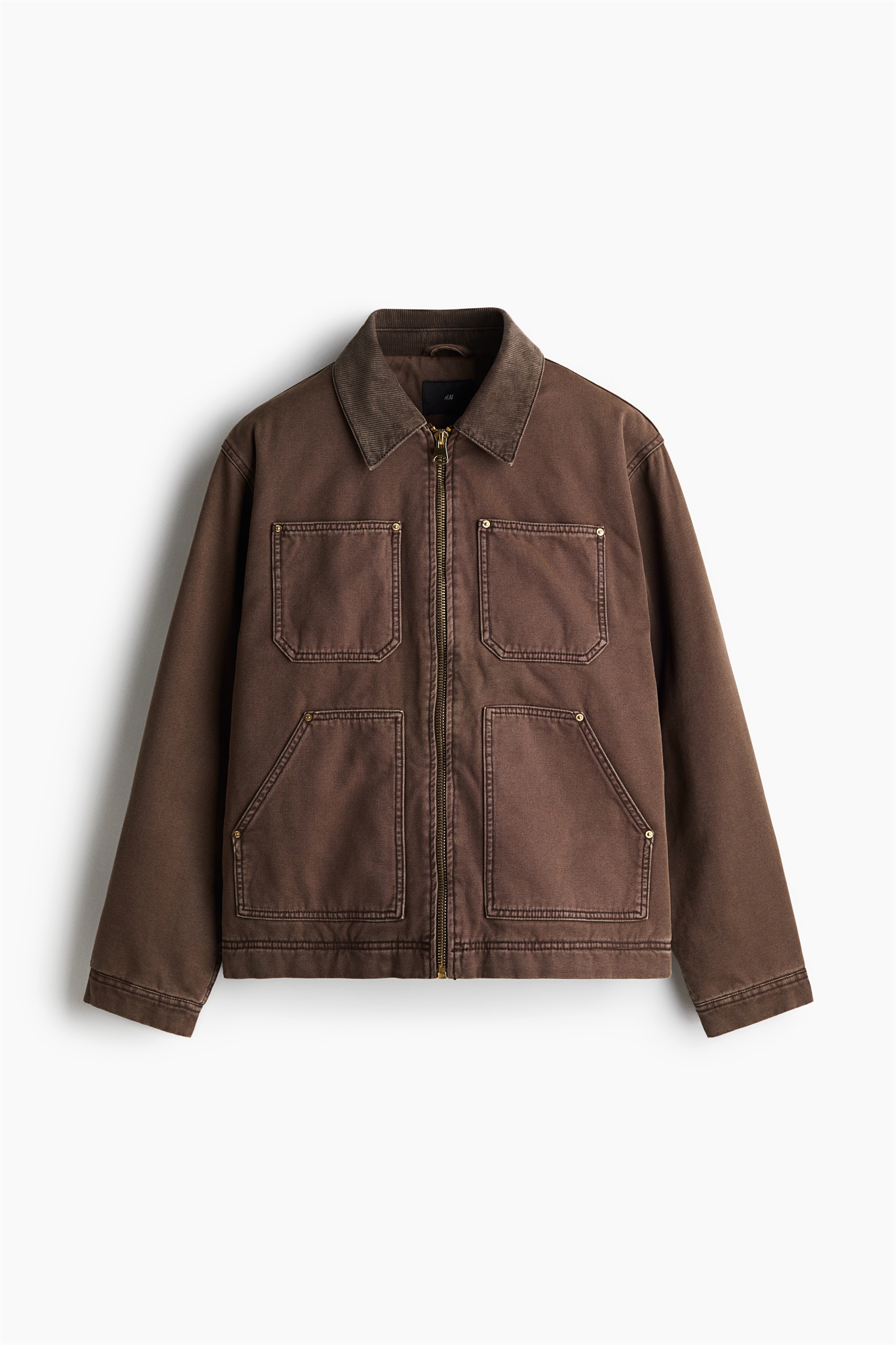 Утилитарная куртка из хлопкового денима с вельветовым воротником. Застежка-молния спереди, ярмо сзади и регулируемые прижимные кнопки на манжетах и по бокам подола. Накладные нагрудные и передние карманы, а также внутренний карман с потайной кнопкой. Свободный крой для пышного, но не чрезмерно большого силуэта. Стеганая подкладка.