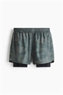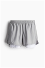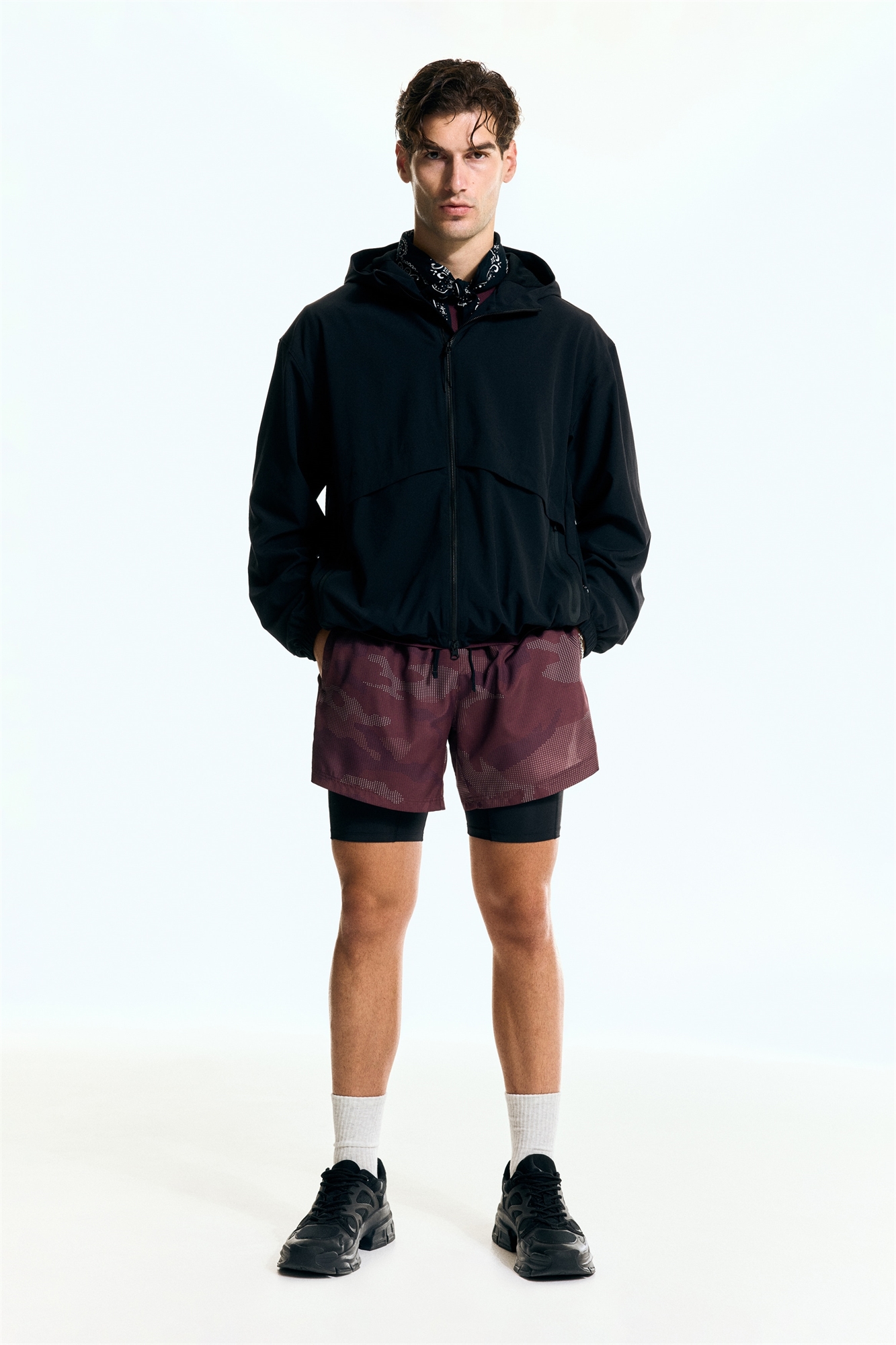 Спортивные шорты средней длины из функциональной ткани с добавлением DryMove™, которая отводит влагу от кожи, обеспечивая комфортную сухость во время движения. Регулярный крой с закрытой эластичной отделкой и скрытым шнурком на талии, боковыми карманами и разрезом по бокам на подоле. Шорты надеваются поверх велошорт из джерси с открытым карманом на одной штанине.